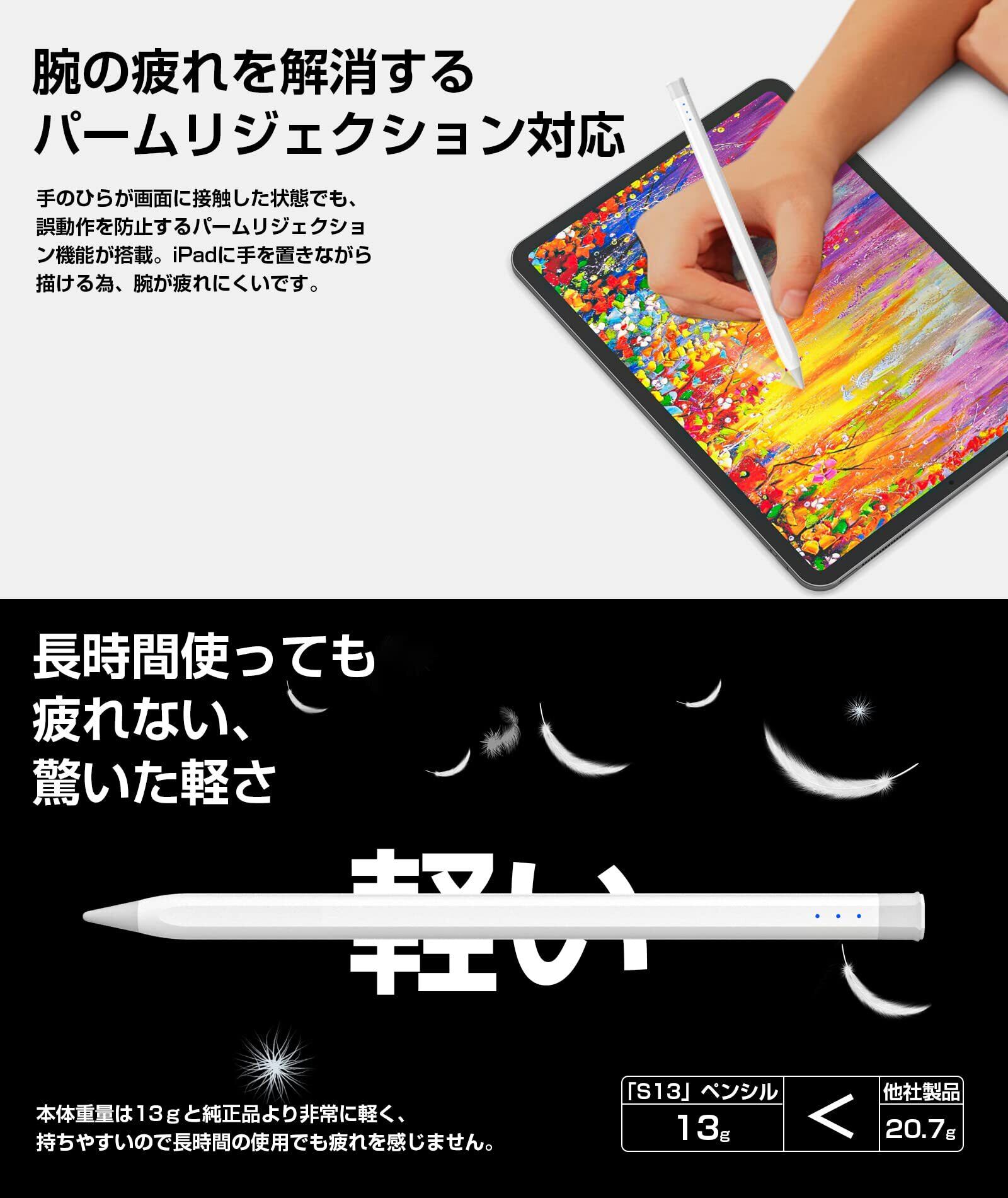 【特価セール】【iPad 2025モデル対応】USGMoBi タッチペン iPad専用 ペンシル 傾き検知 マグネット吸着 パームリジェクション機能 スタイラスペン Type-C充電式 超高精度 無遅延 iPad/iPad Air/iPad mini/iPad Pro 2018年以降iPadに対応 ペン先2枚付き ホワイト S13 | bobo