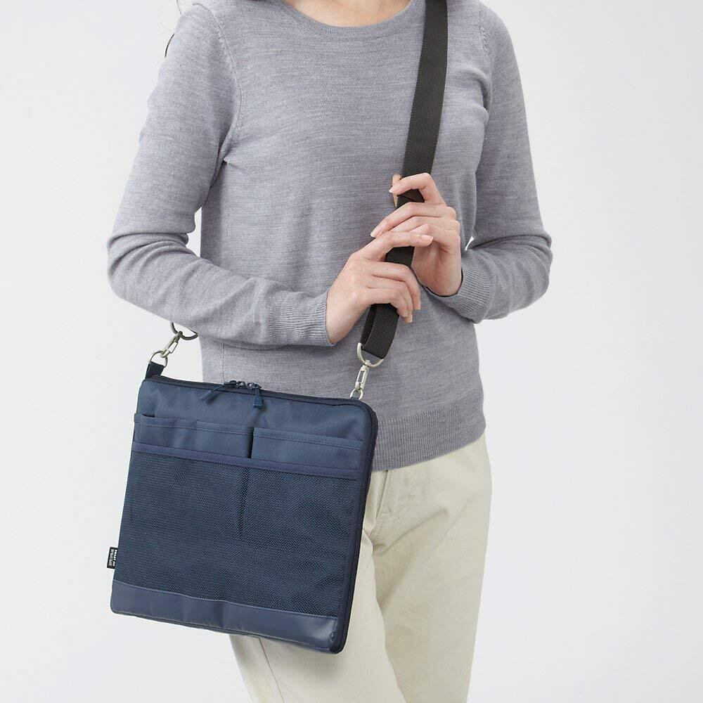 表生地に撥水加工。タブレットPCに優しい起毛生地ポケットが付いた薄型バッグインバッグ。ショルダーバッグにもなるDカン付き。※ショルダーベルトは別売りになります。
