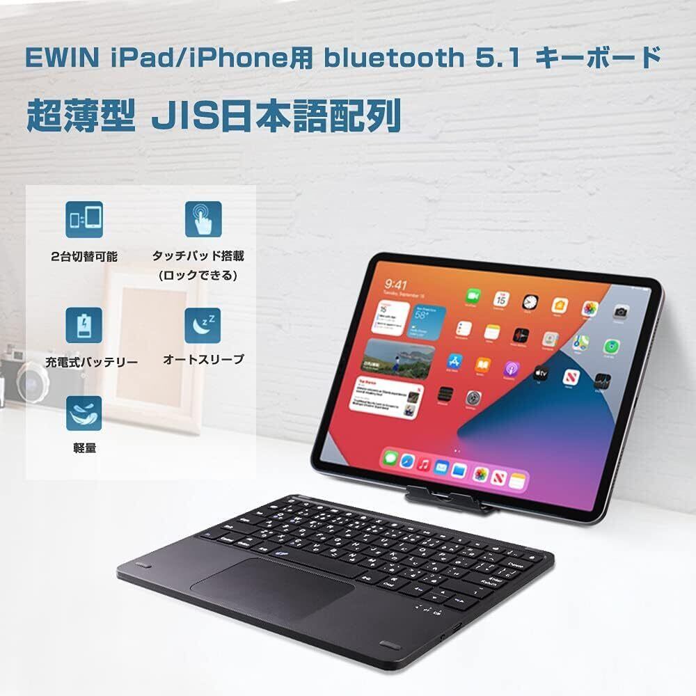 Ewin キーボード bluetooth ワイヤレス iPad/iPhone用 JIS日本語配列 スタンド付き タッチパッド搭載 ロック可能 2台のiOSデバイス切り替え可能 充電式 keyboard 無線 タブレット オートスリープ 薄型 軽量 日本語説明書 ブラック