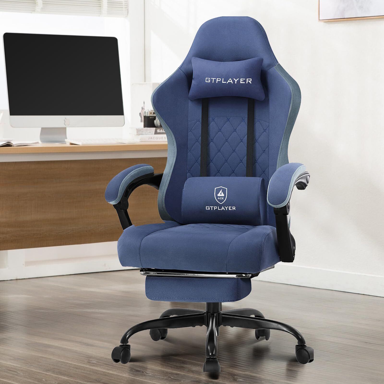 GTRACING ゲーミングチェア ファブリック デスクチェア オットマン 椅子 イス テレワーク 【ポケットコイル採用】 腰痛対策 pcチェア 蒸れない ソファーの座り心地 【安心の非再生ウレタン採用】『ダイア調に蝶の刺繍のデザイン』LR002新シリーズ