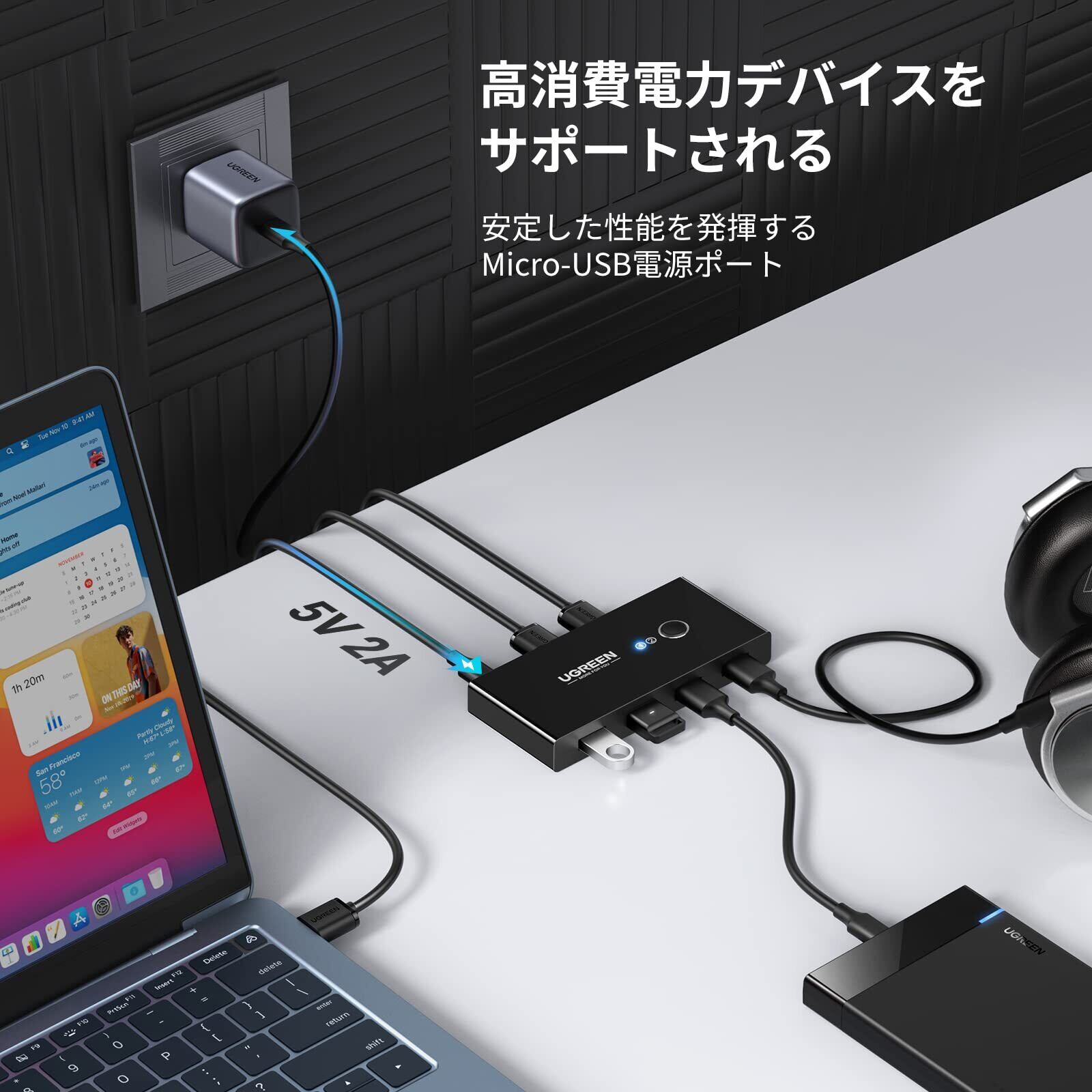 【新着商品】UGREEN 切替器 3.0 高速転送 USB 切り替え PC2台用 プリンタ マウス キーボード ハブなどを切替 手動切替器 プリンタ 切り替え機 USBケーブル×2 1.5m (附属品) (パソコン2:USB機器4) | bobo