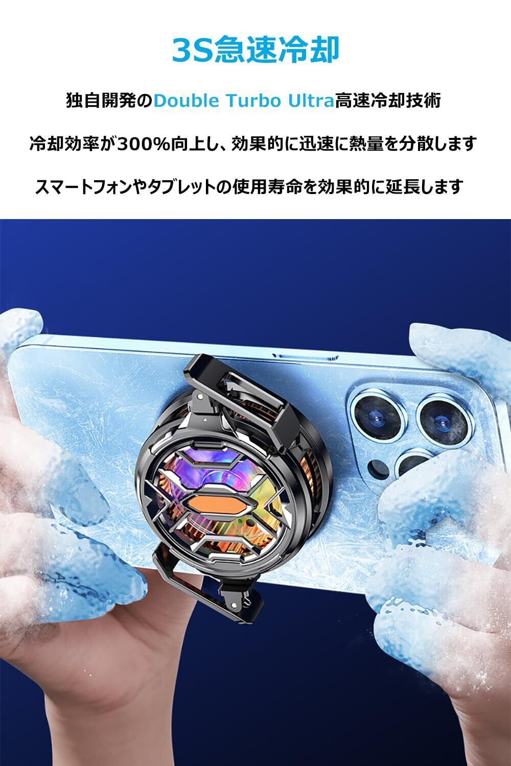 【ペルチェ素子&3秒急速冷却】全く新たに開発されたDouble Turbo Ultra高速冷却技術を採用し、同時に8000回転の大トルクファンをアップグレード、冷却と放熱の効果が300%以上に上昇します、スマホの熱対策としてご使用いただけます。スマホ&タブレットでビデオを視聴したりゲームをプレイしたりすると、スマホ&タブレットの温度が上昇し、操作がスムーズでなくなったりデバイスの寿命が短くなる問題が発生します。このスマホ冷却ファンの使用により、スマホ&タブレットの温度がすぐに下がり、バッテリーを保護し、寿命を延ばします、発熱による各種の操作遅延を防止し、長時間にわたってスマホ&タブレットのスムーズな動作を維持します。これこそ最強の「スマホ クーラー」です!