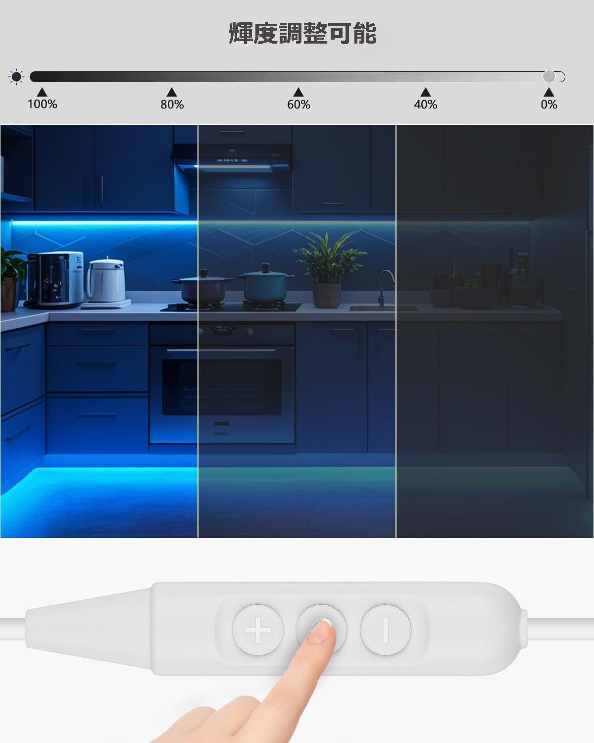 【調光可能なCOB LEDテープライト】: 5段階の明るさ調整機能付き調光コントローラーを搭載、さまざまなシチュエーションでの明るさのニーズに簡単に対応。また、記憶機能付きで電源再投入後も前回終了時の動作をいたし、毎回の調整作業が不要で、時間を効果的に節約できます。