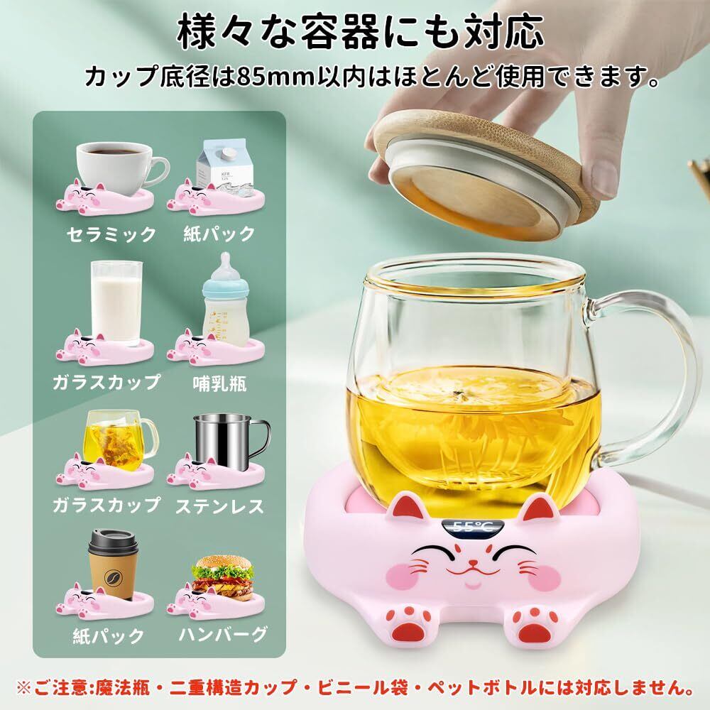 猫模様 カップウォーマー コーヒーカップウォーマー 保温コスター オフィスウォーマー 3段階温度調節 45℃~70℃ スマホスタンド機能付き 自動電源OFF ドリングウォーマー マグカップウォーマー 可愛い 液晶画面 クリスマス プレゼント (ピンク)