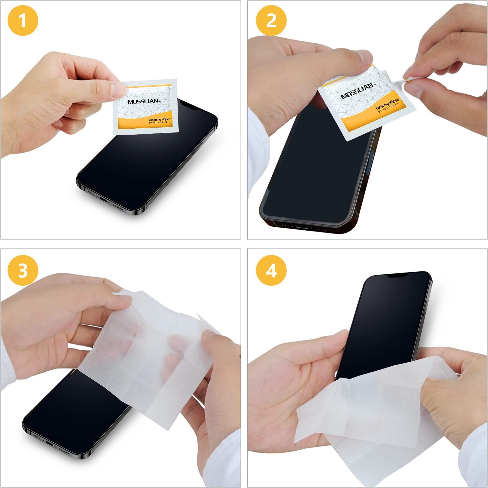 【こだわりの清潔性能】MOSSLIANのクリーニングティッシュはスマホ、タブレット画面のしつこい指紋や油脂を強力除去出来ます。軽く拭き取るだけで汚れをキレイに落としし、帯電防止効果があり、ホコリが付きにくくなります。