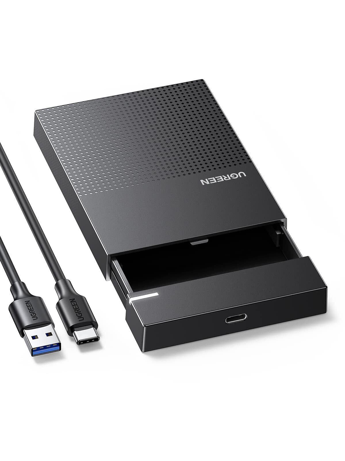 UGREEN 2.5インチ HDD ケース HDD/SSD ケース 【USB 3.1 Gen 2規格】 SATA 3.0 Type-C接続 UASP対応 6Gbps高速転送速度 10TB大容量 9.5mm/7mm HDD/SSD対応 2.5インチ ハードディスクケース 工具不要 Mac OS/Windows/Linux等に対応 【USB C-USB A ケーブル付き】