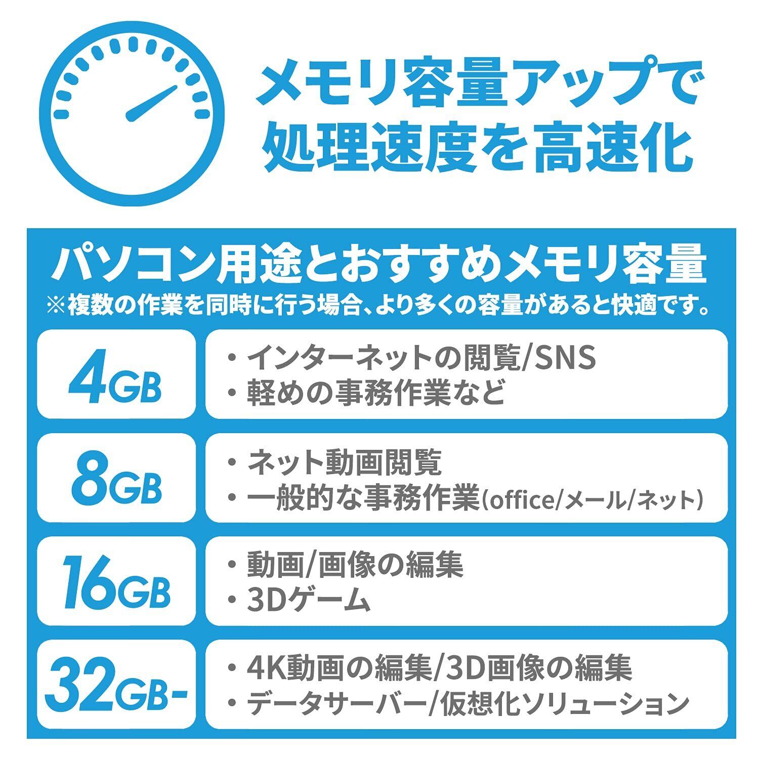 標準的なDDR3と比較して20%の消費電力低減が可能。省電力を実現し、発熱を低減、システムの安定化に効果的です。
