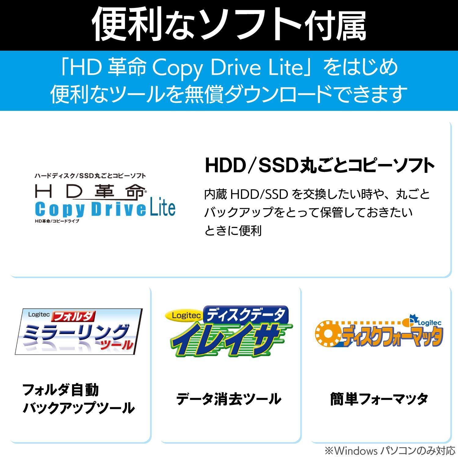 ■「Logitecディスクフォーマッタ」、「Logitecディスクイレイサ」、「Logitecミラーリングツール」の3種類のロジテックオリジナルツールを無償ダウンロード可能。ハードディスクをより便利にご使用いただけます。