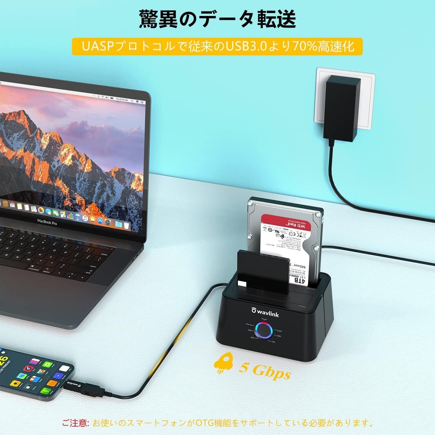 【在庫処分】WAVLINK USB 3.0 SATA I/II/III デュアル ベイ外付けハード ドライブ ドッキング ステーション 2.5 インチまたは 3.5 インチ HDD、SSD オフライン クローン デュプリケータ機能付き USB3.0 5Gbps および OTG 機能をサポート 2x16TB対応 オフラインクローン | bobo