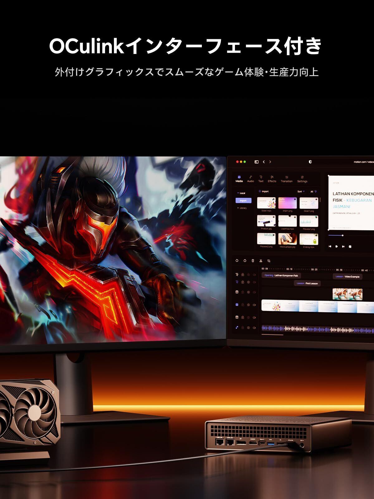 【トリプルディスプレイ出力】 HDMI2.1 (4K@120Hz)、DP(4K@144Hz)、USB4(8K@30Hz|4K@144Hz) 出力端子を搭載し、ウルトラHD画面を同時に3台のディスプレイへ独立出力できます。複数のワークスペースを拡張することで、仕事の効率を向上させます。デジタルサイネージや証券トレーディングをはじめ、主にエンジニアリング設計などCADを使う業務、科学計算、アニメーション制作、映画やテレビのポストプロダクションなど、高性能コンピューティングとグラフィックス処理を必要とする分野で使用されます。 これらは通常、個人ユーザーまたは専門分野の専門家によって使用されます。