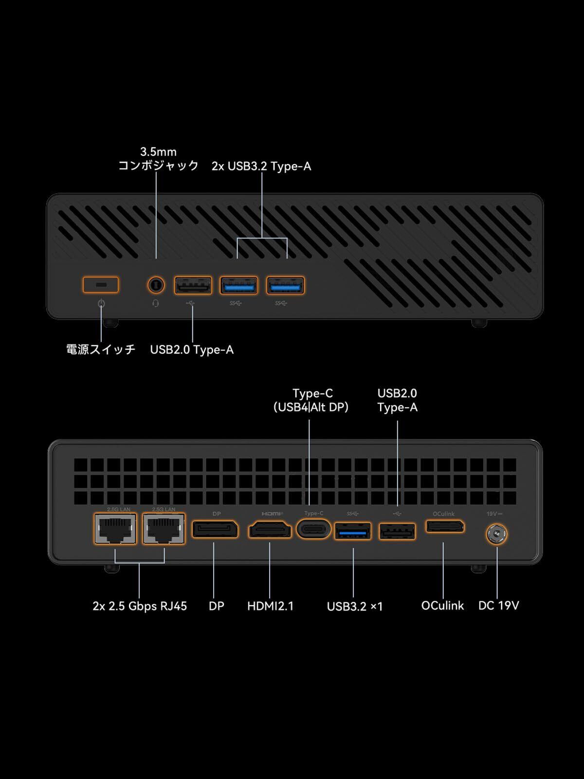 MINISFORUM MS-A1 ミニワークステーション ベアボーンキット、1xUSB4、1xHDMI2.1、DP×1、Wi-Fi 6E、BlueTooth 5.2、2x2.5G LANポート、DDR5-5200スロット、4xPCIe4.0 SSDスロット、ディスクリートグラフィックカードサポート