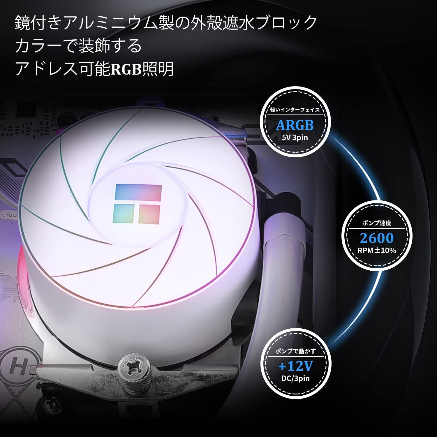ARGB神光同期】ファンと水冷ヘッドのARGBをマザーボード上の5V 3pinと同期させて光同期を実現、1600Wカラーソフトライト効果、豊かな照明効果を提供しながら効率的に冷却(まばゆい光の世界を作り出す)、光スロット不足を避けるために直列にライト効果をサポートする