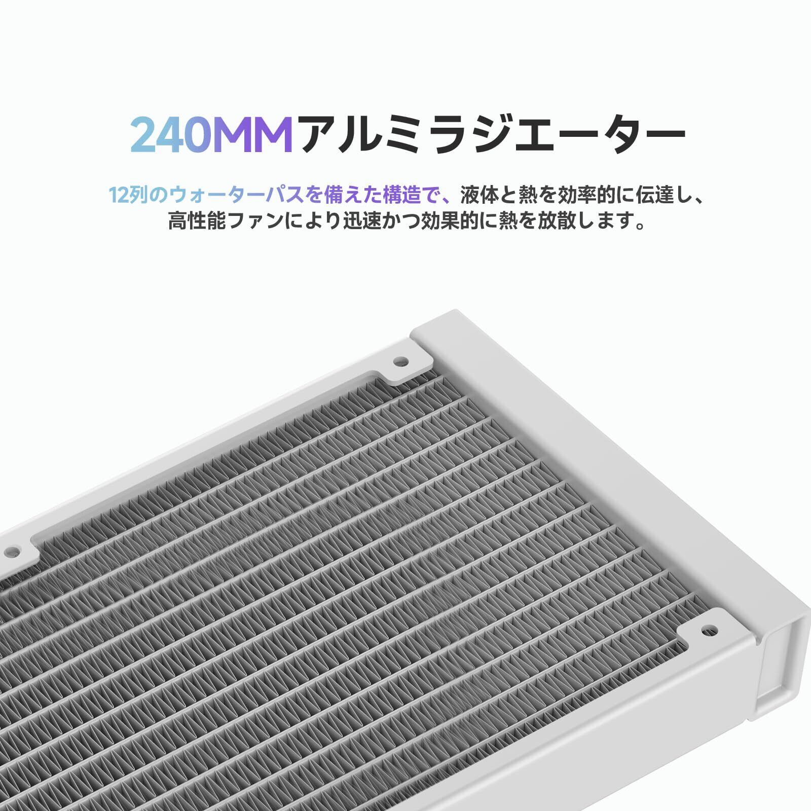 Ocypus Iota L24 CPUクーラー 水冷、デジタルディスプレイ、240MM AIO 簡易水冷CPUクーラー、効率的な冷却ポンプ、ARGB照明コントロール、120MM PWMファン、最大2000 RPM、AMD & Intel LGA対応 (ホワイト)