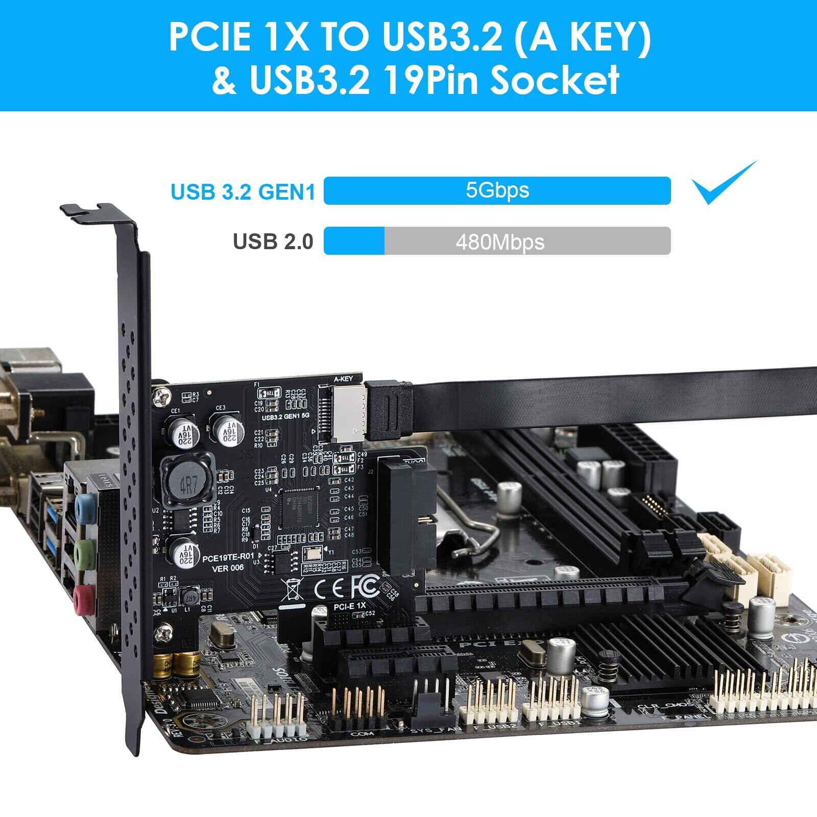 YBBOTT USB 3.2 GEN1 5Gbps Type-E (Key A) + USB3.0 19pin フロントパネル拡張ボード、XP/ WIN7/ WIN8 /Vista/ WIN10/ WIN11 32BIT/64BIT/Linux対応