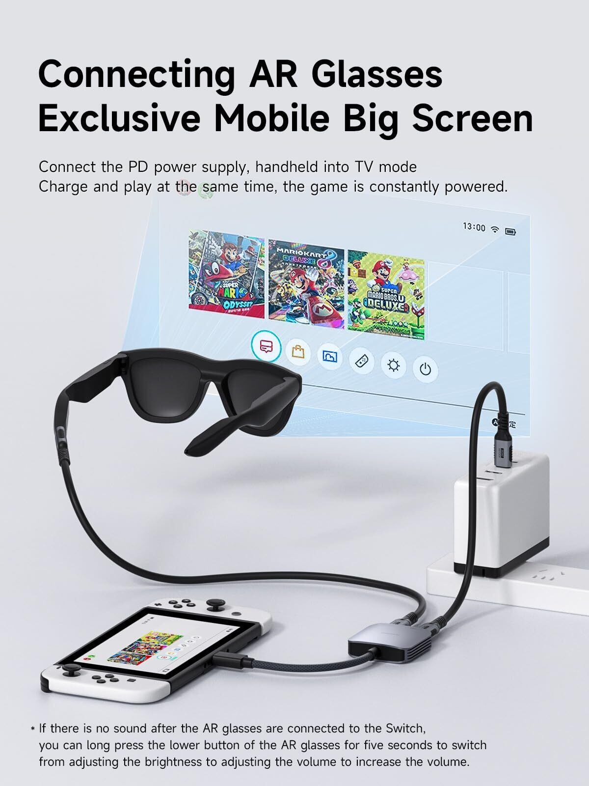 パワー&プレイ:Hagibis USB-C メガネ&充電アダプターは、AR メガネを使用しながらゲームセッションやストリーミングをパワーアップします。充電してプレイすれば、バッテリー切れでゲームアドベンチャーが中断されることはもうありません。