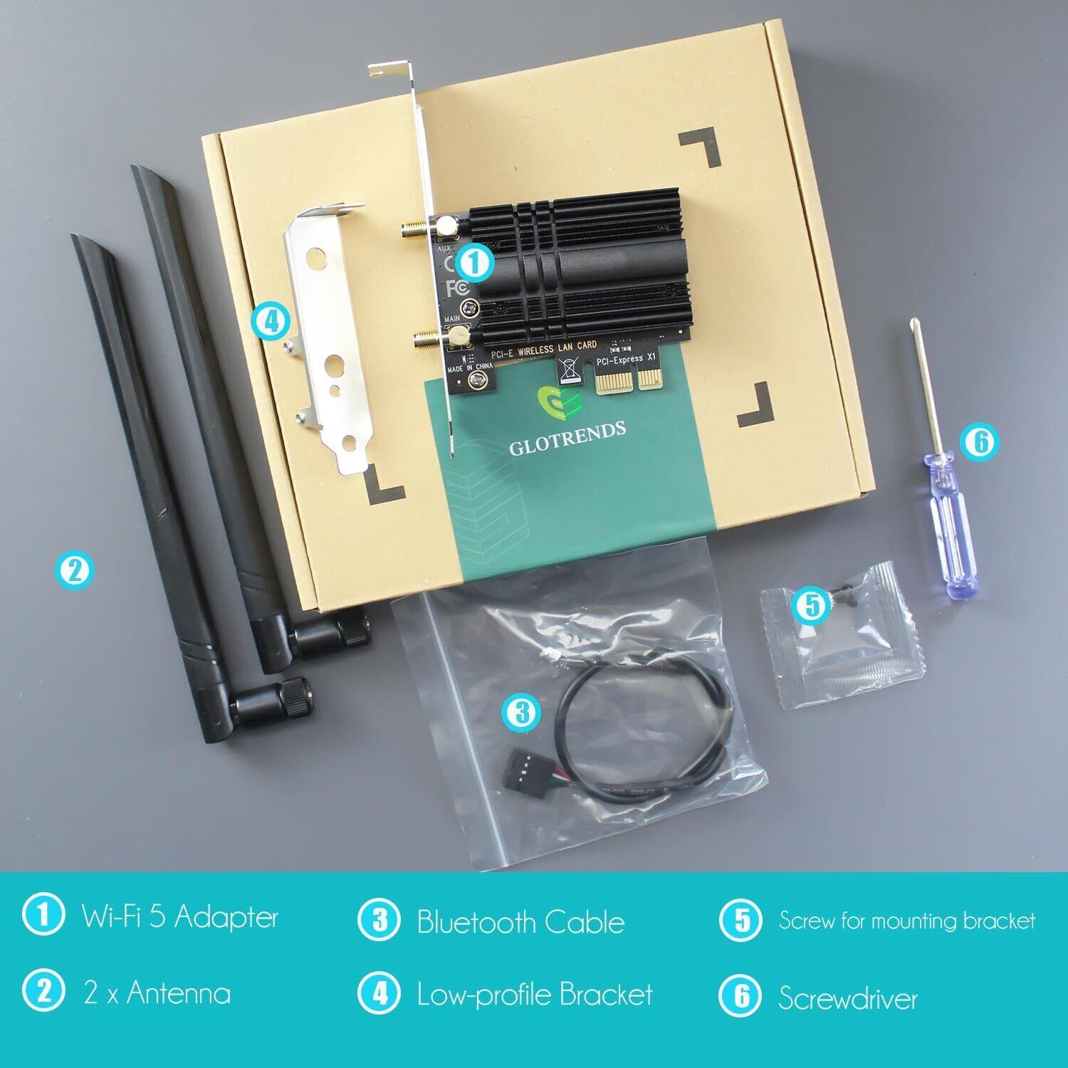 GLOTRENDS AC1200 WiFi 5 PCIeカード、デスクトップPC用薄型ブラケット、Intel 7265チップ、802.11ac、Bluetooth 4.2、Windows 11/10/7/Linux対応、Mac OS/Windows XP非対応