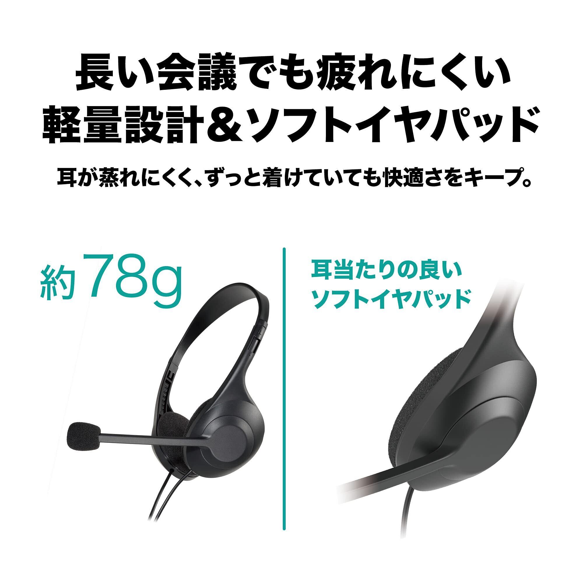 ■使いやすく、蒸れにくい、クリアに話せる片耳ヘッドセット■双指向性エレクトレットコンデンサーマイクの近接効果を利用したノイズキャンセリング方式を採用。周囲の雑音を抑え、相手にクリアな音声を提供します。さらに、付属のウインドスクリーンで自分の息によるノイズ(ポップノイズ)もカットできます。■耳当たりの良いソフトイヤパッドを採用したオープンタイプ。耳が蒸れにくく、ずっと着けていても快適さをキープ。軽量設計で首や肩への負担も少なく、長めの会議でも安心です。■コードにあるコントローラーで、音量調整やマイクミュートのON/OFF 操作が可能。通話中でもPC 画面から目を逸らさずに、自分の声を瞬時にカットできます。■カーボンブラックフィルムの振動板を採用 したドライバーにより、さまざまなコンテンツでクリアかつ自然なサウンドが聴けます。またUSB 接続のため、アナログ接続と比べてノイズの少ないデジタル再生をお楽しみいただけます。