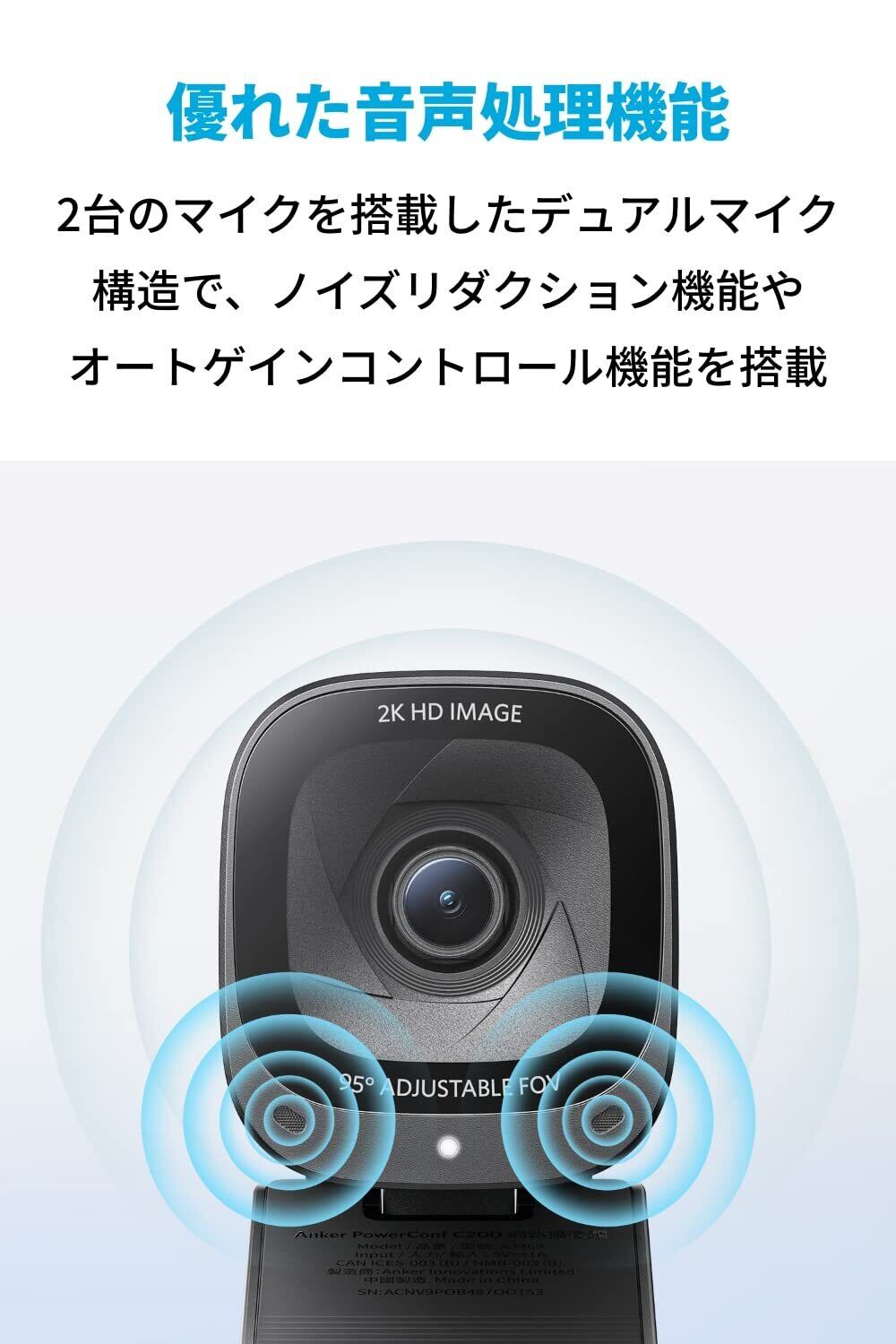 Anker PowerConf C200 / 2K コンパクトウェブカメラ/ノイズリダクション/オートゲインコントロール/オートフォーカス/画角調整/プライバシーカバー