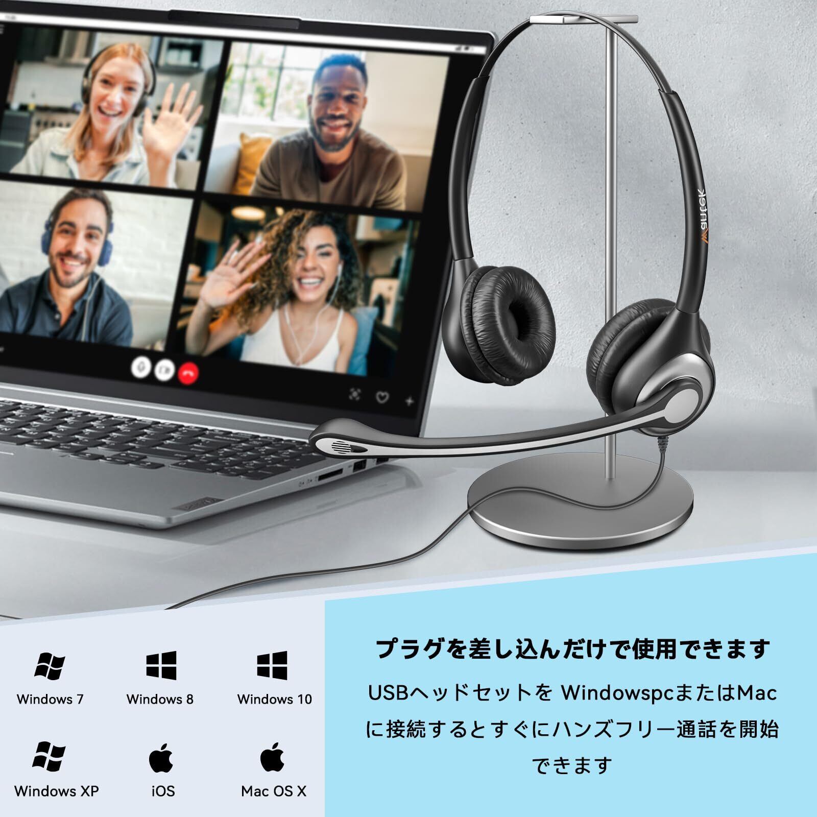 「超耐久性」 精密設計、優良品質のプラスチック、ヘッドバンド構造と柔軟なマイクブームにより、この両耳の会議用USB、3.5mm、TypeCヘッドセットはより耐久性があります。
