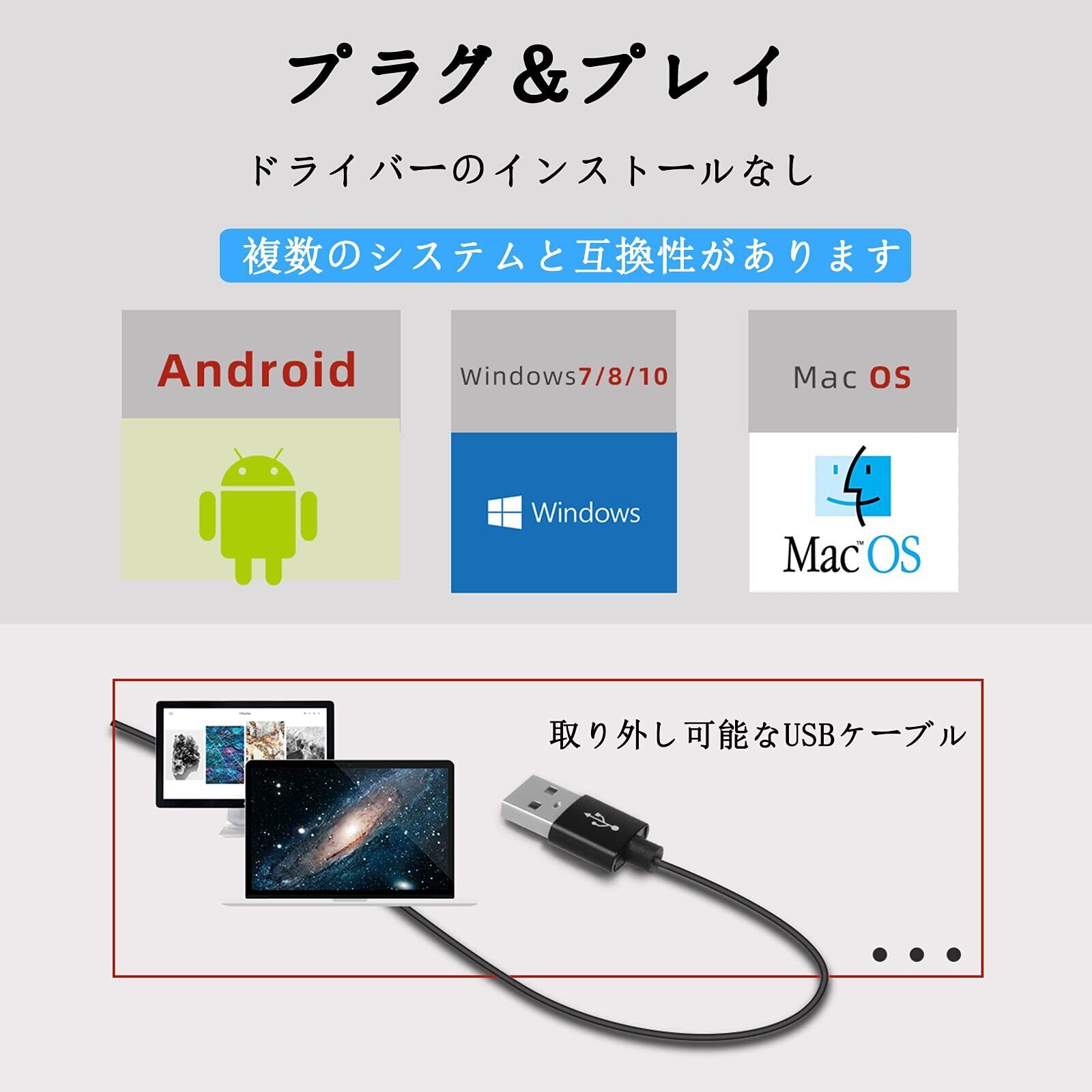 【USBプラグアンドプレイ】インストールするドライバーがなく、PCコンピューター、ラップトップに簡単に接続でき、Windows XP / Vista / 7/8/10、Mac OSなどのシステムと互換性があります。