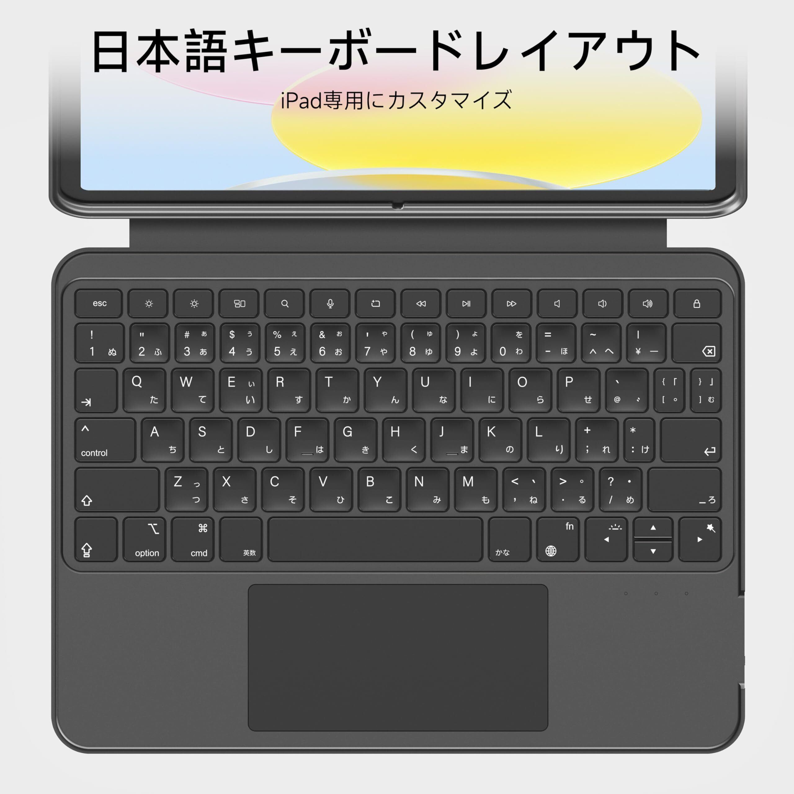 HOU対応 iPad 11インチA16 2025/10世代 ケース キーボード、iPad第11/10世代用回転式&着脱式キーボードケース、伸縮性ペンホルダー、完全保護カバー、7色バックライト、マルチタッチトラックパッド、日本語配列