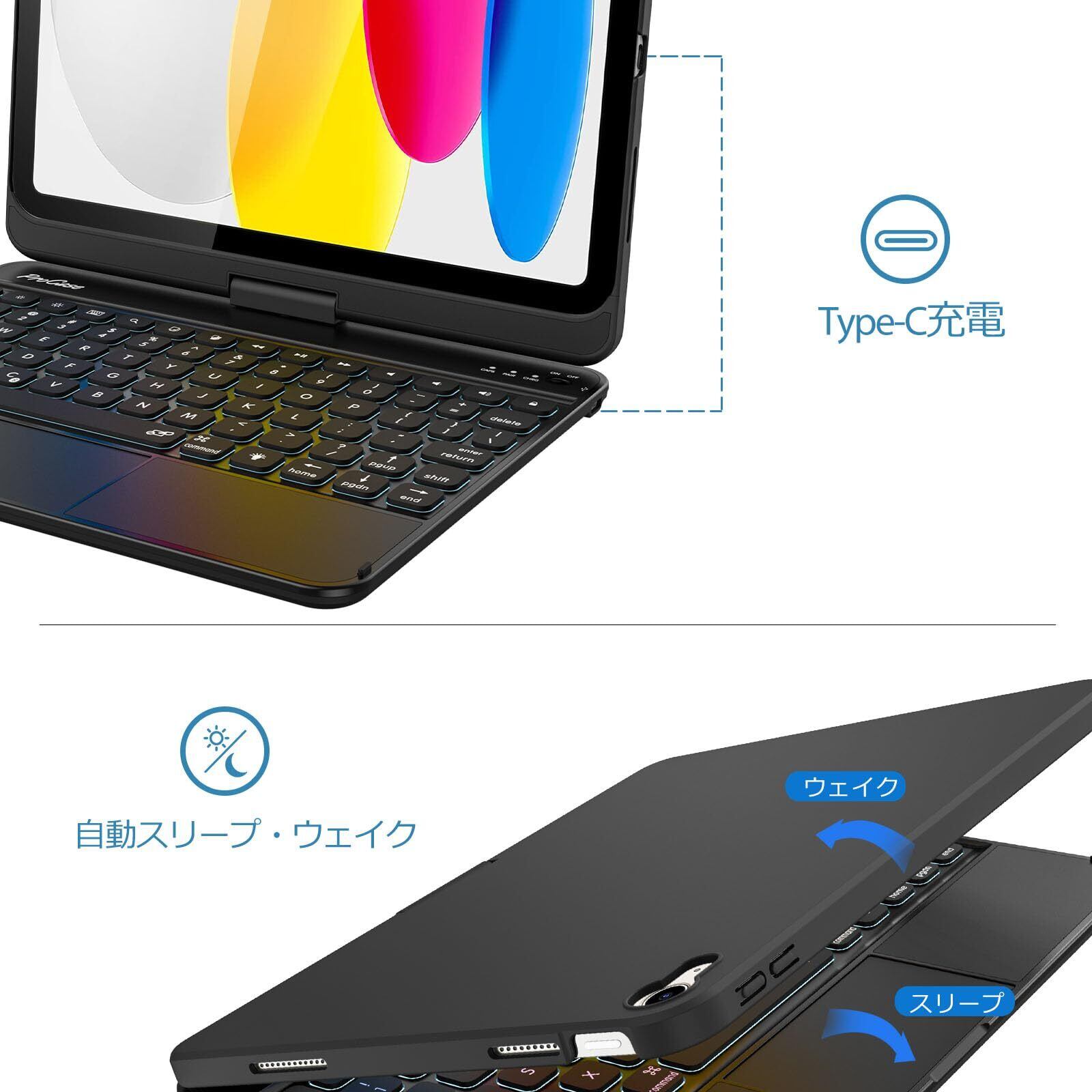 ProCase iPad 11世代/10世代 キーボード付きケース iPad(A16)11インチ 2025/10.9インチ 2022通用 タッチパッド搭載 7色バックライト 360度回転