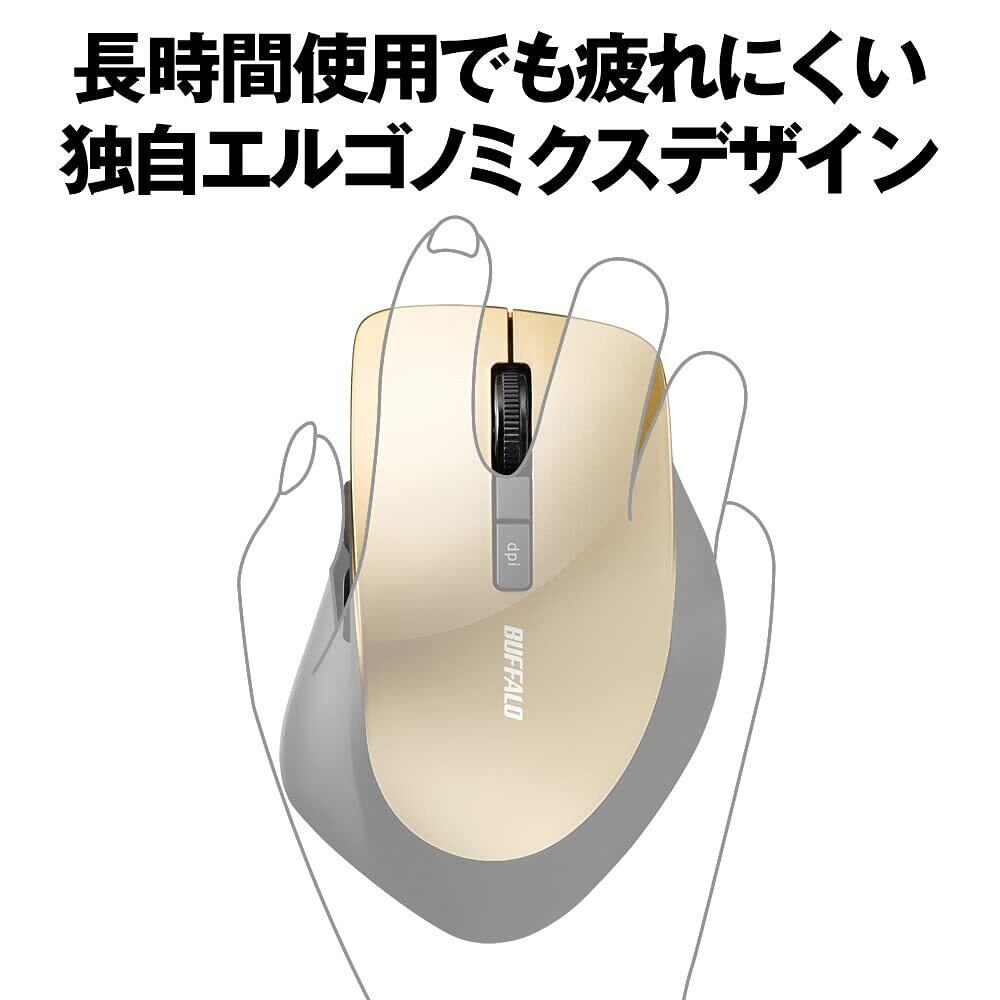 バッファロー マウス 無線 ワイヤレス 静音 5ボタン 【戻る/進むボタン搭載】dpi切替 BlueLED シャンパンゴールド BSMBW325SG