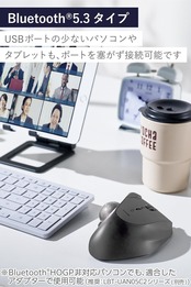 ■Bluetooth(R)HOGPに対応したパソコンであれば、レシーバーを接続することなくトラックボールを使用できるため、USBポートの少ないパソコンやタブレットにぴったりです。