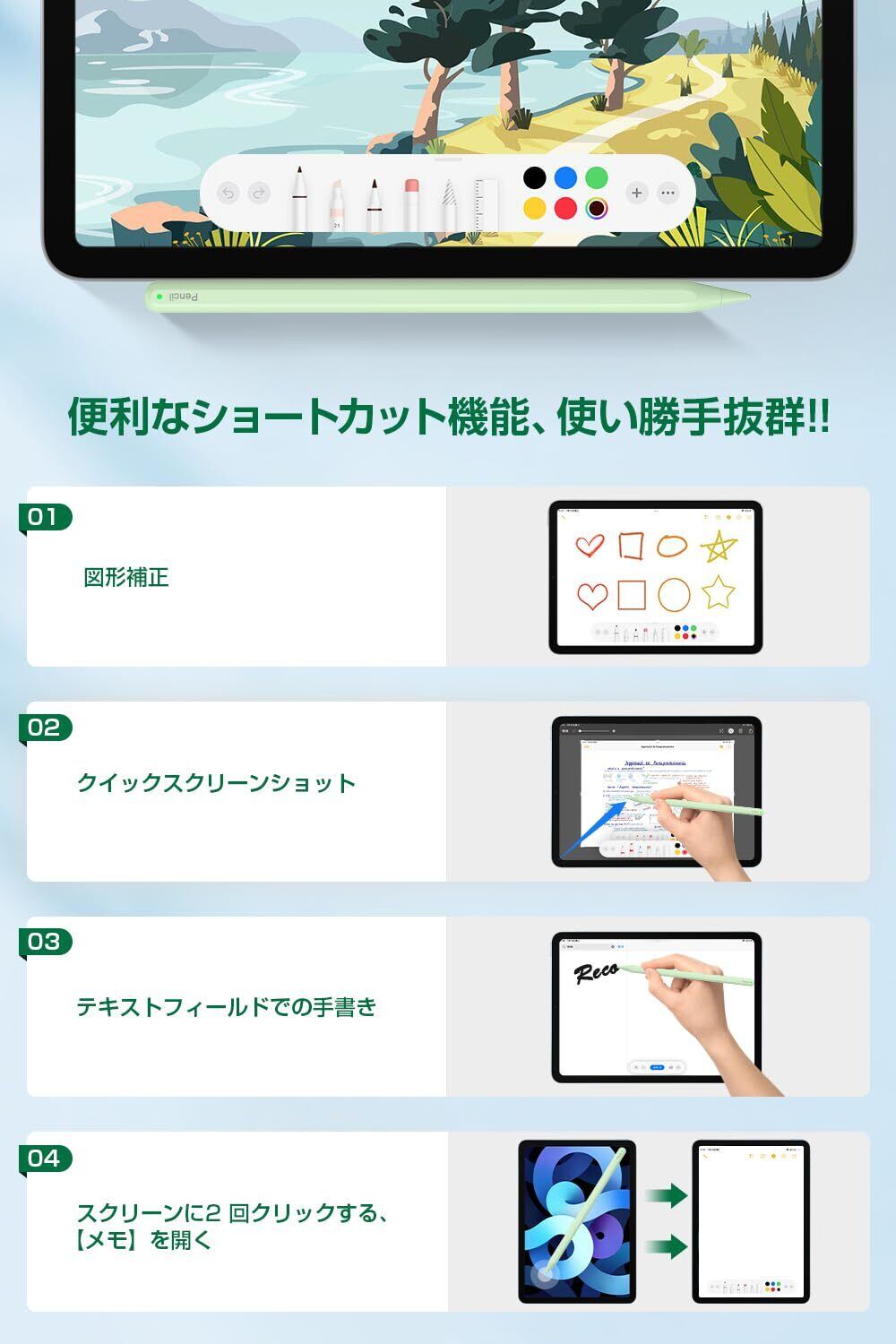 【正規認証品 ワイヤレス充電】アップルペンシル Viangsタッチペン ipad ペン 磁気充電 apple pencil互換スタイラスペン 超高感度 極細 0遅延 ペンシル 傾き感知/誤作動防止/磁気充電対応 タッチペン タブレット用 (グリーン)