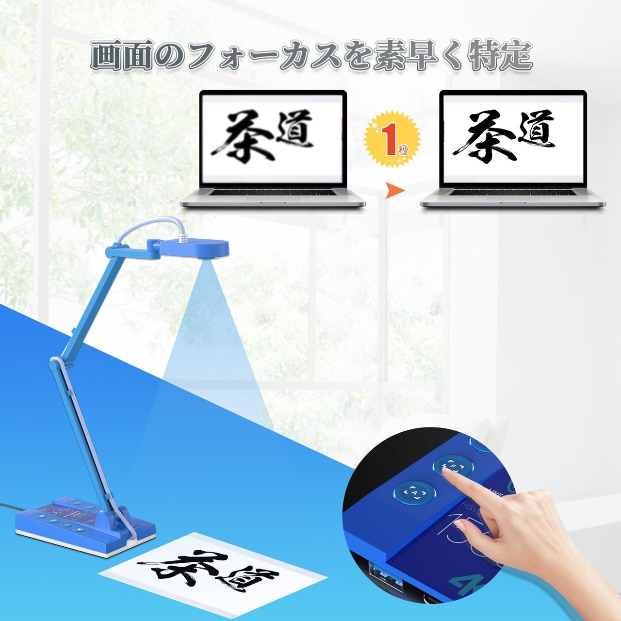 【対象物をシャープに捉える】対象物を素早く特定し、カメラが自動的にテキストを鮮明に表示します。強調するポイントにはデジタルズームボタンを長押しするだけで簡単にズームインすることができます。