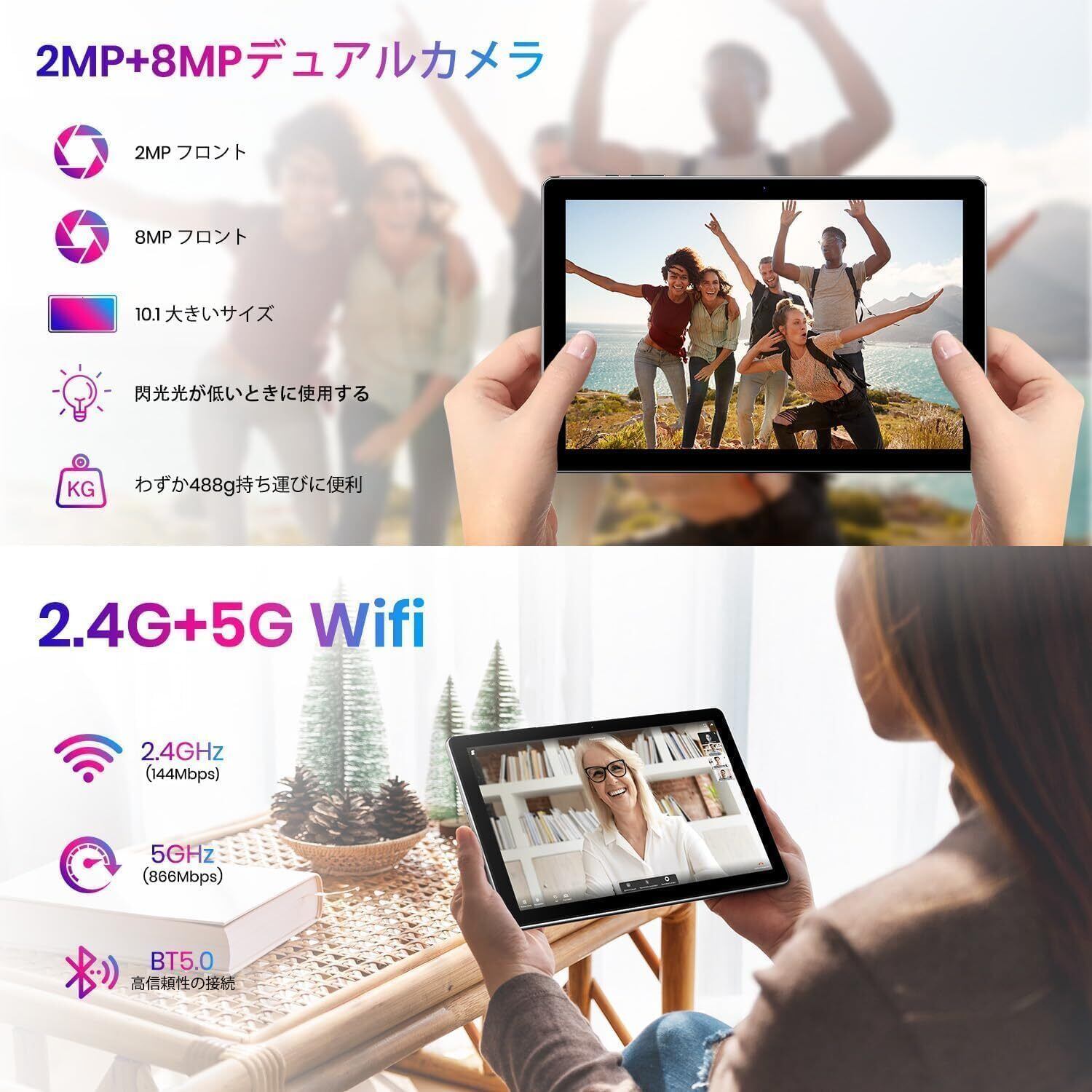 【タブレット 10インチ wi-fiモデル 】10GB+64GB+1TB拡張、アンドロイド14 タブレット 8コアCPU 2.0Ghz、Widevine L1 2.4G/5GWiFi 6 BT5+6000mAh+USB-C+Type-C+3.5mmヘッドフォンジャック+1280*800 IPS 画面 OTG/無線投影/分割画面/説明書付属