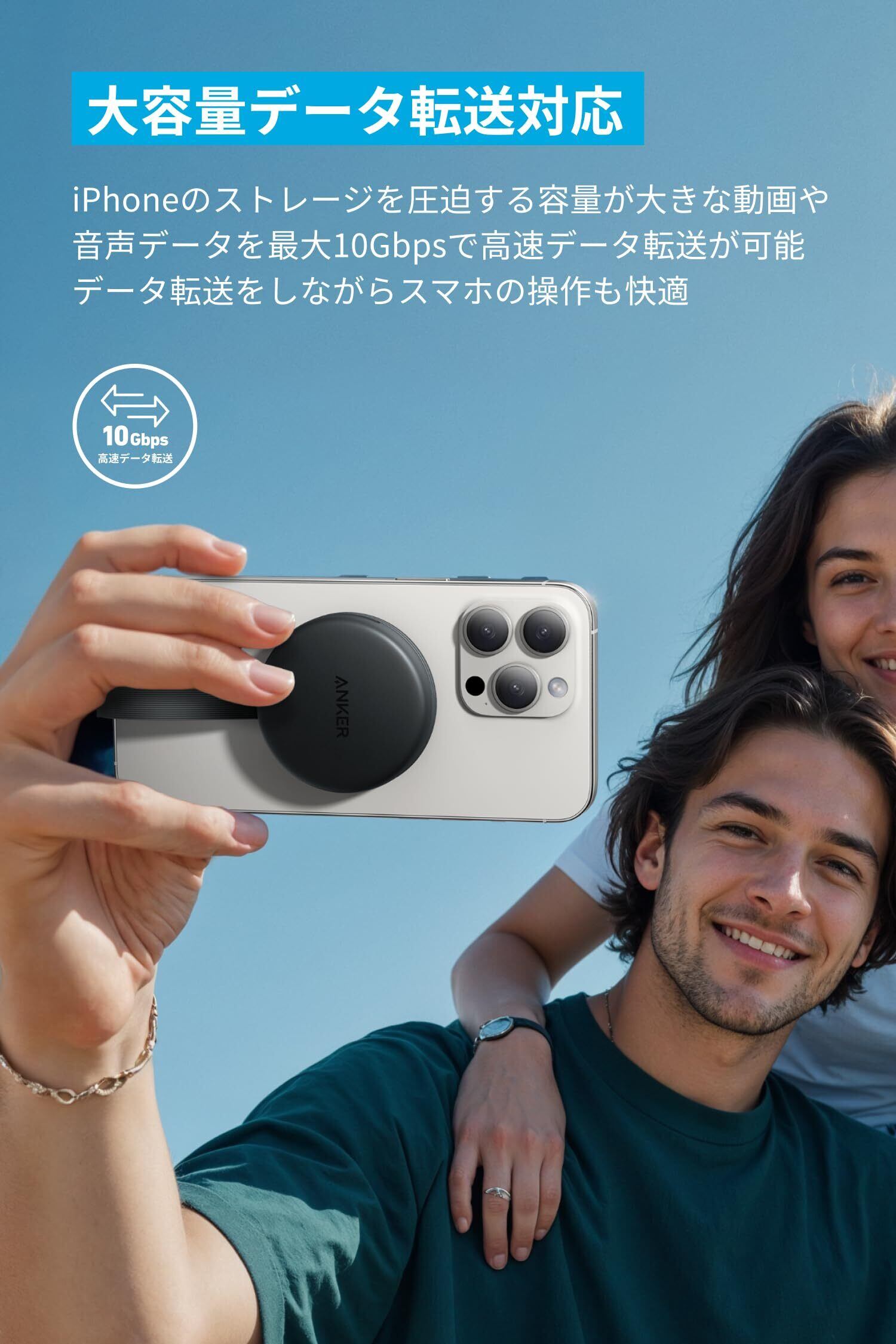大容量データ転送対応:iPhoneのストレージを圧迫する容量が大きな動画や音声データを最大10Gbpsで高速データ転送が可能で、データ転送しながらでもスマホを快適に操作できます。