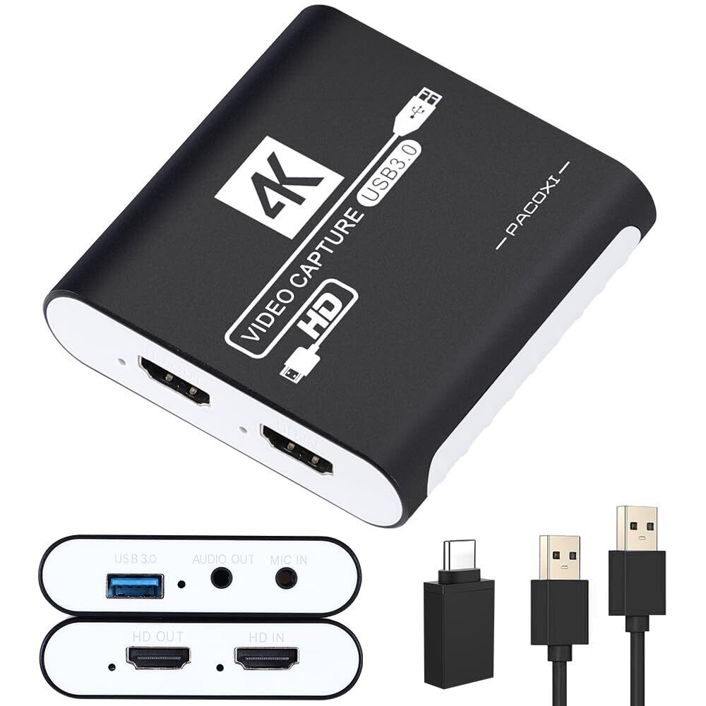 HDMI キャプチャーボード Switch対応 4K パススルー対応 1080P 60FPS USB 3.0 高速伝送 ビデオゲームキャプチャー ボード PC/PS4/PS5/Xbox/Wii U/ウェブカメラ/スマートフォン対応 Windows 7/8/10/11 Mac Linux Android iPad に対応、OBS Zoom XSplit QuickTime Potplayer 互換
