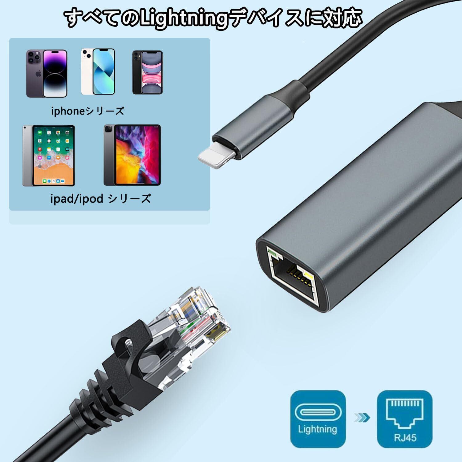 Lightning 有線LANアダプター 30-100/Mbps 高速安定伝送、i-Phone 有線 LAN コネクタ i-Pad/i-Phone 14/13/i-Phone 14Pro/12/XR などに対応 プラグアンドプレイ 電源不要 (グレー 21cm)