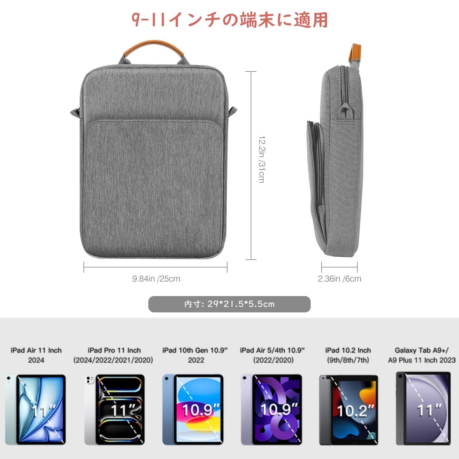 「9-11インチのデバイスに適用」 内寸:29*21.5cm*5.5cm、iPad 11世代(A16) 11インチ、iPad 10世代 10.9、iPad Air/Pro 11インチ(M3/M2)、iPad mini 7/6、iPad 10.2 2021/2020/2019、 iPad Air5 2022 / iPad Air4 2020、iPad Pro 11 2021/2020/2018、iPad Air 10.5 2019、iPad 9.7 2018/2017、Galaxy Tab A9+ 11、Xiaomi Pad 6、Redmi Pad SE、Surface Go、chromebook ideapad duet 10.1とその他の9~11インチのノート・タブレットPC/電子書籍リーダーに適用します。