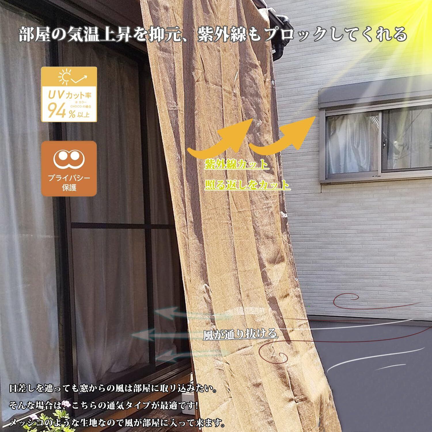 ️【遮熱効果(45%カット)・日よけシート】高い遮熱効果を持つ生地を使用しており、太陽からの熱や地面からの反射熱を45%カットする日よけシートです。室内の温度が下がり、まるで木陰のような涼やかで快適な空間を演出します。