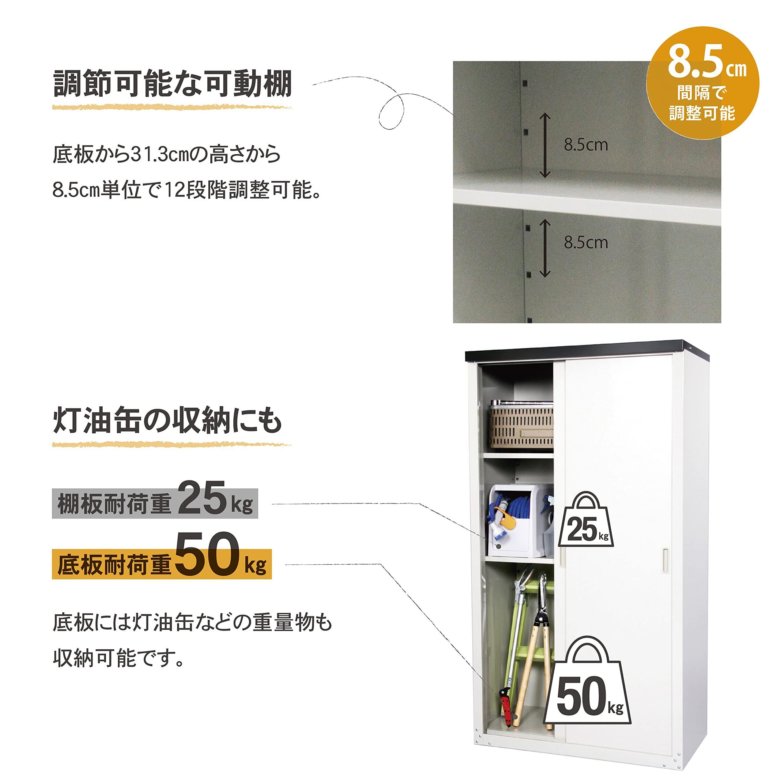 【抜群の収納力。】高さは162㎝(内寸157㎝)と高く、底板耐荷重は50㎏。耐荷重25㎏の棚板が2枚付属しており、小柄な収納庫からは想像もできないほどの荷物が入ります。