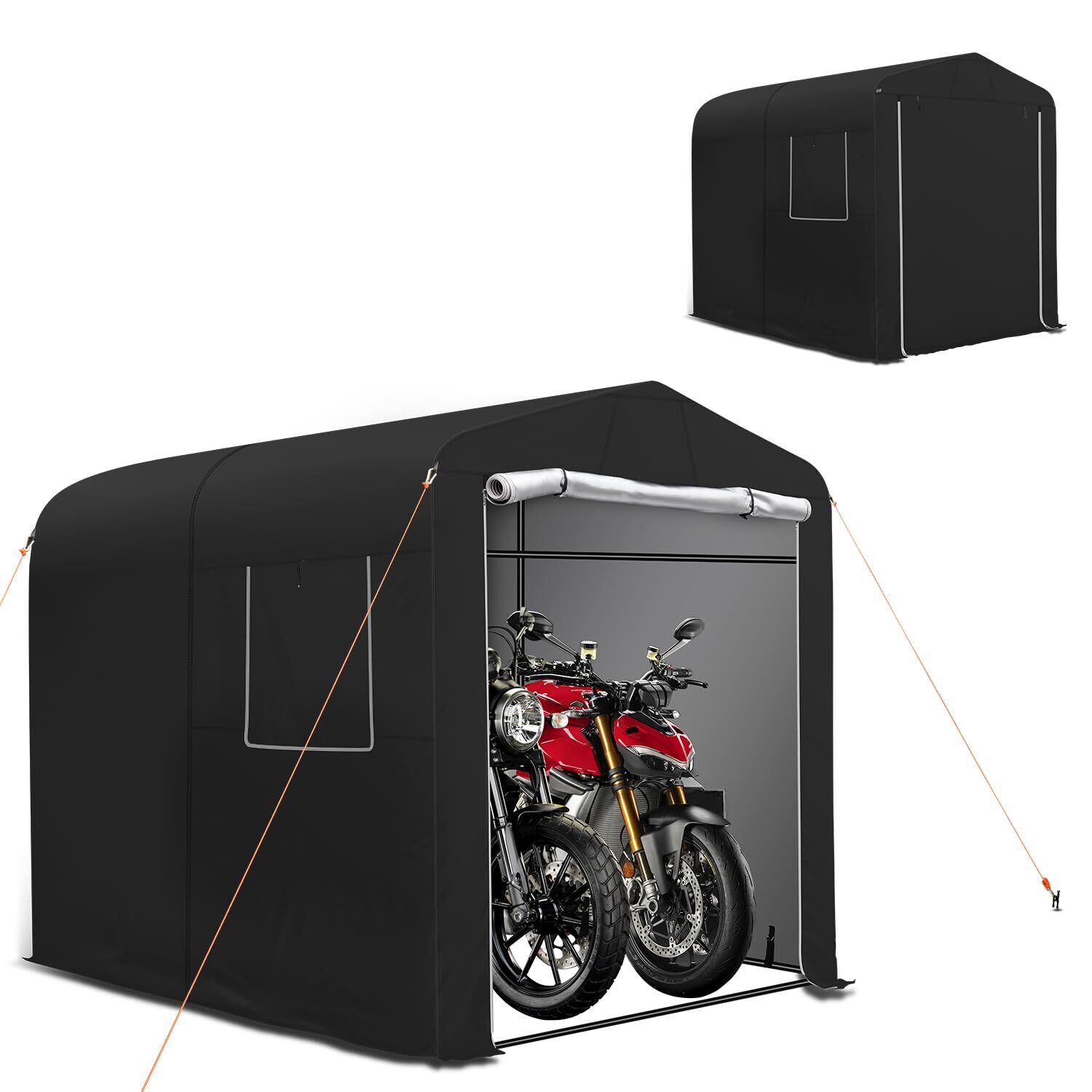 【2025最新型デザイン】バイクガレージの内部には新しく改良されたシルバーコーティングが施され、バイクガレージがより美しく仕上がるだけでなく、UVカット効果も効果的に向上します。 ジップヘッドは最新型のセルフロッキングジップヘッドにアップグレードされ、物置のジップを締めても風でジップが開くことがなく、物置内のアイテムの安全を守ります。