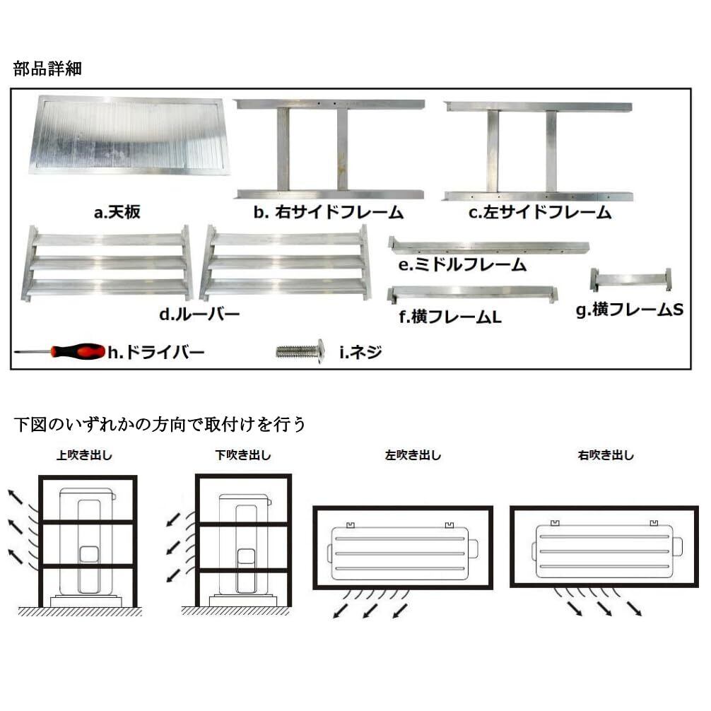 軽くて丈夫なアルミ製でサビや腐食に強いため耐久性に優れています。 豪雪地域でも雪の重みにも耐えられます。室外機の上の空間を無駄なくエアコンカバーの天板に植木鉢やバケツやスコップ・ちりとりなど見えるところに置いたりすることもできます。脚部はアジャスター仕様のため、使用環境に合わせてガタツキのないように調節が可能です。