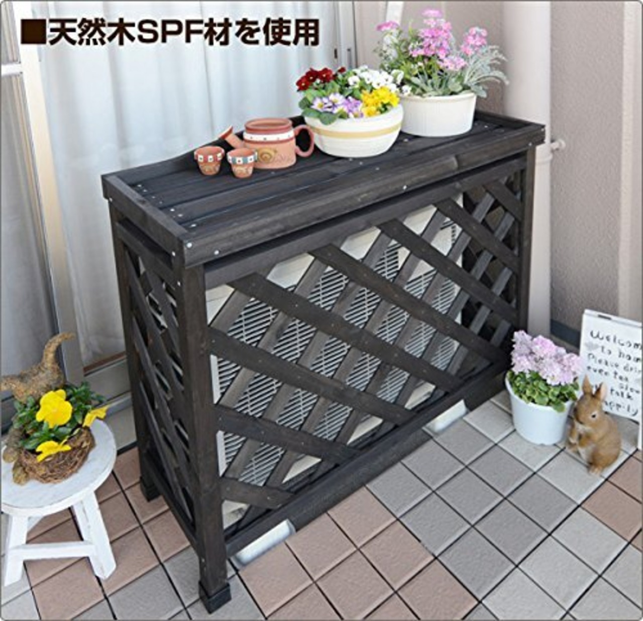 【在庫セール】ガーデンマスター(Gardenmaster) エアコン室外機カバー 幅87×奥行35×高さ82cm 天然木SPF材 エアコンガード ベランダ バルコニー ガーデンマスター ダークブラウン KOAC-8735 | bobo