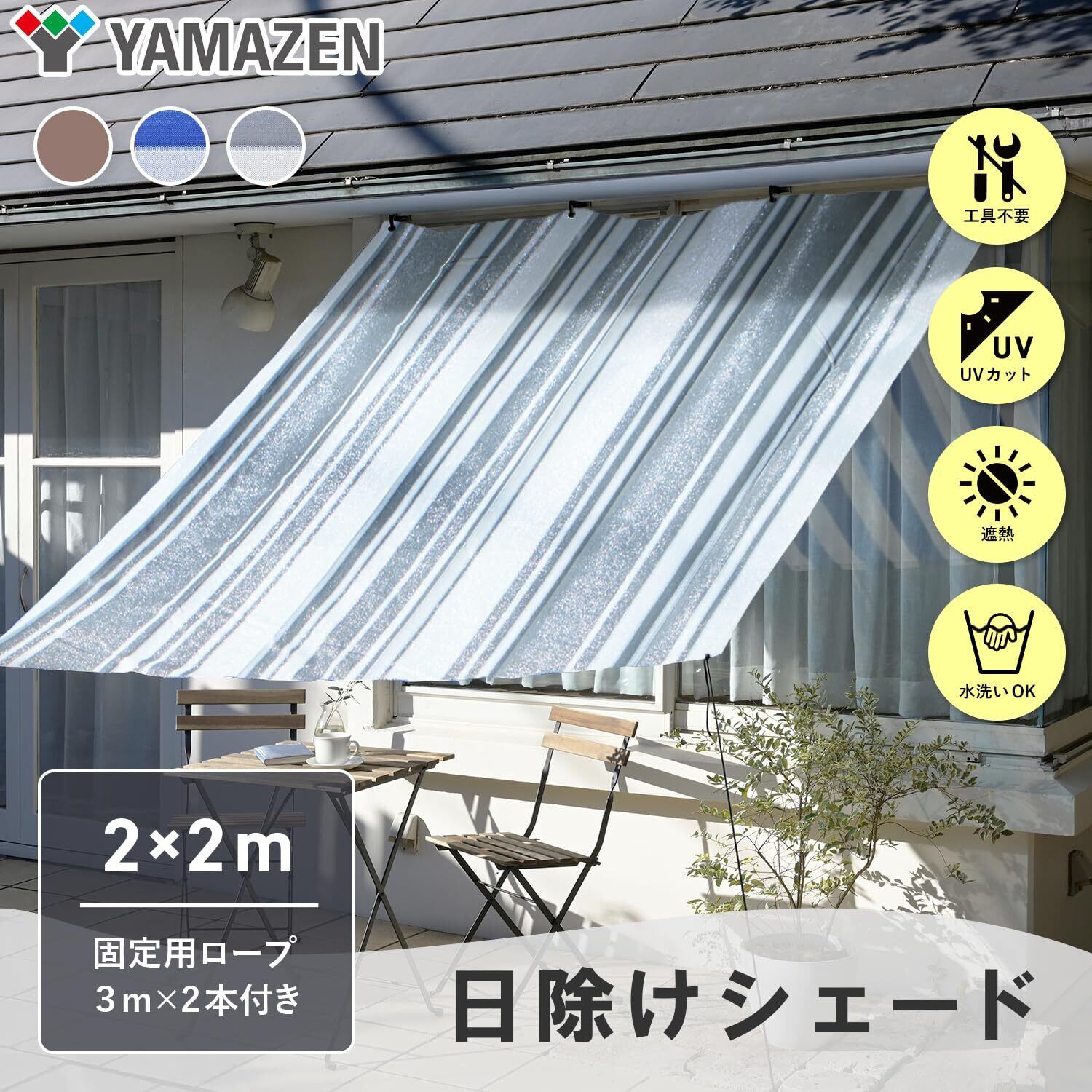 【在庫セール】山善(YAMAZEN) 日よけシェード 200×200㎝ 取付金具セット 水洗い可能 ハトメ8箇所 UVカット率約85% 節電 省エネ ベランダ 紫外線カット 防水 涼風 グレー/ホワイト YRGS2-2020 | bobo