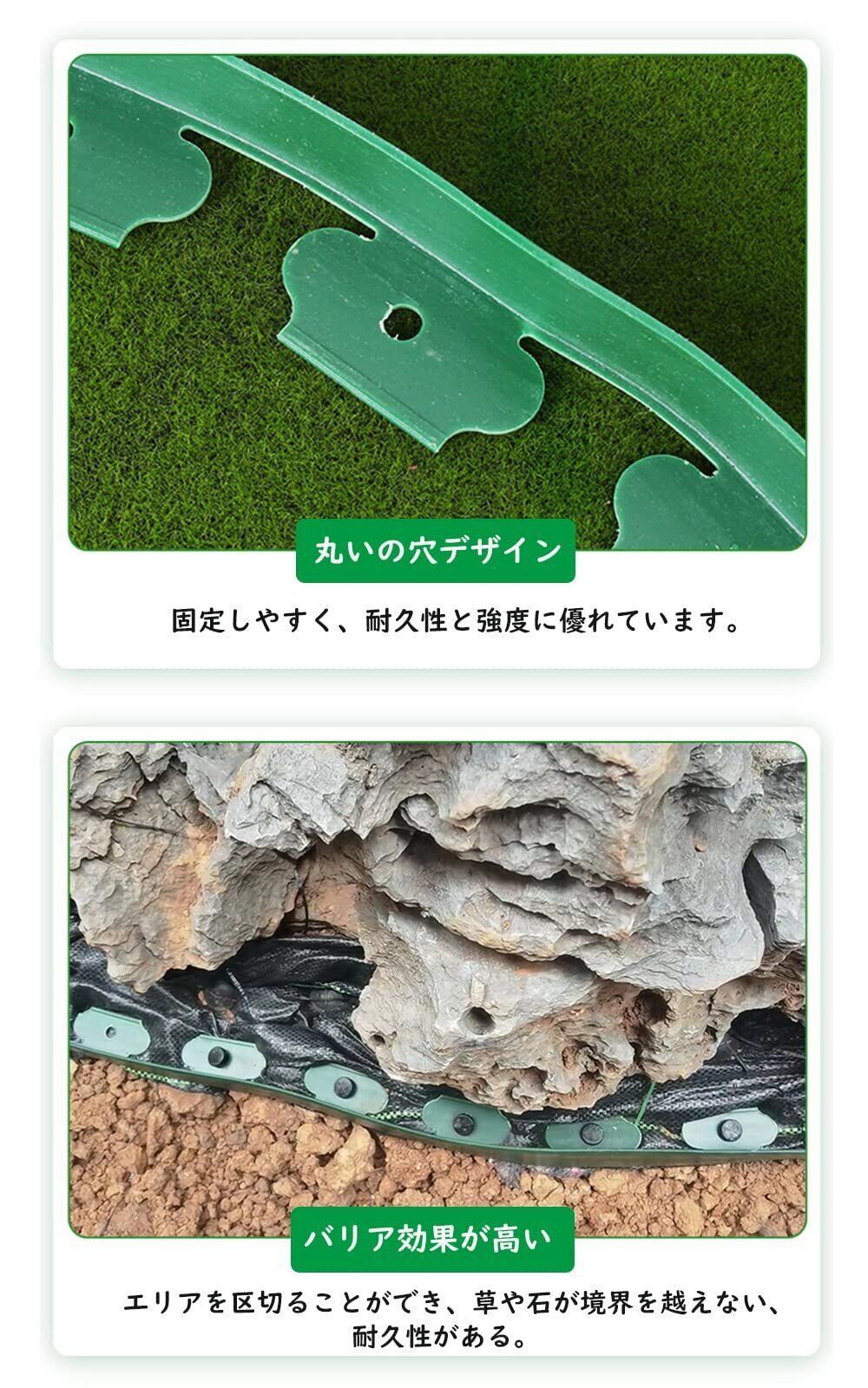 【材質】プラスチック製+プラスチック製アンカーボルト。高さ5cm/10cm選択可能 長さ10m裁断可能 グレー、グリーン、ブラウン、ブラック 4色選択 【固定ピンの長さ】(約)20㎝ 【固定ピンの数】30本