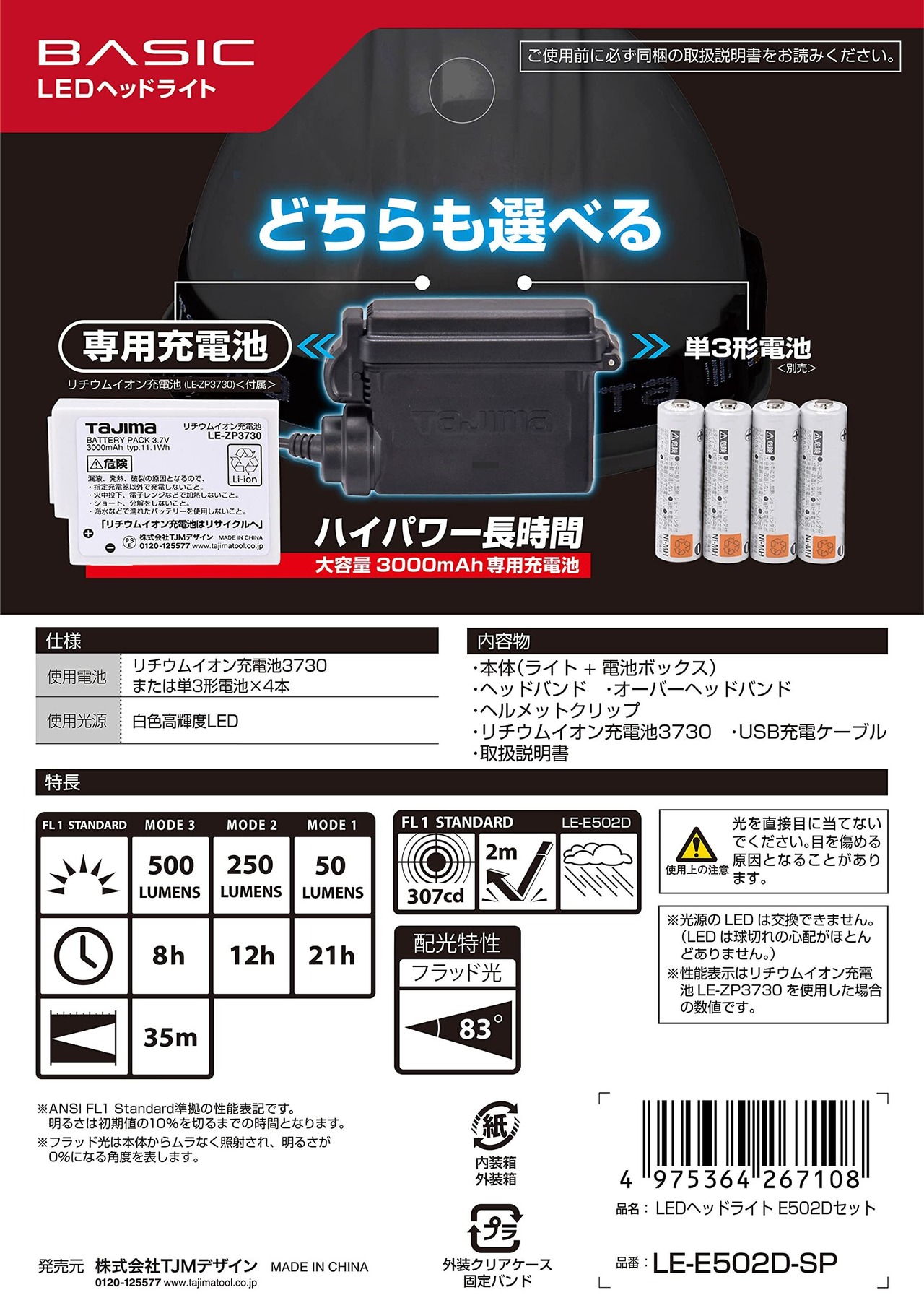 TJMデザイン タジマ(Tajima) LEDヘッドライトE502Dセット LE-E502D-SP 専用充電池付 黒金