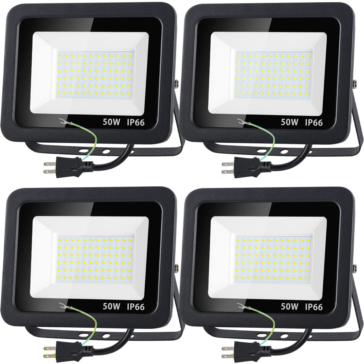 LED投光器 屋外 作業灯 50W【4個セット】850W相当 昼光色 LEDチップ IP66防水 2Mコード アース付きプラグ 屋外照明 とうこうき PSE認証済