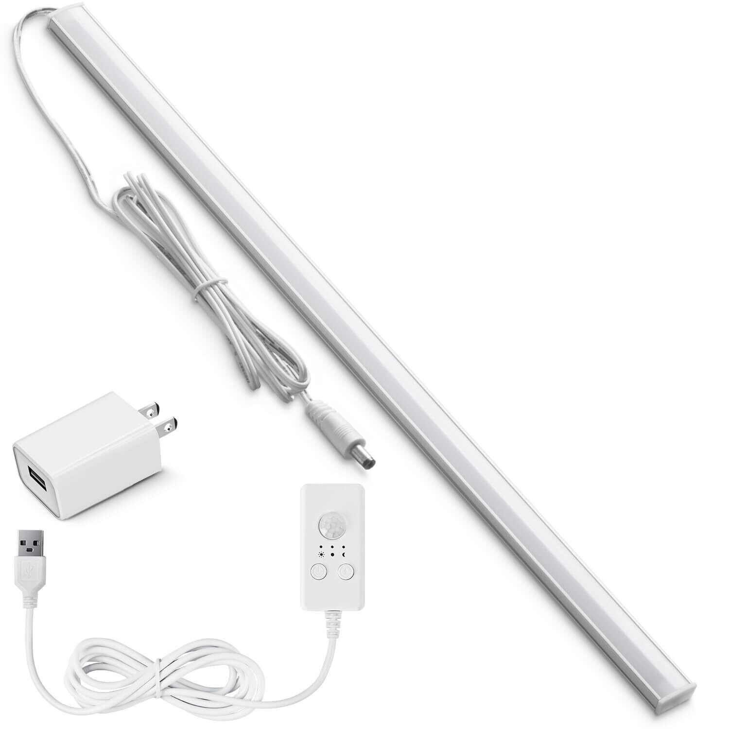 LEDセンサーライト 室内 コンセント 人感センサー【分離型 消灯時間設定】 LED バーライト USB給電 無段階調光 薄型 35cm マグネット 工事不要 玄関/クローゼット/キッチン/トイレ/階段(昼光色/6000K)