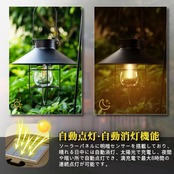 「夜間自動点灯」ソーラーパネルに明暗センサーを内蔵しており、暗くなるとライトが自動で点灯、明るくなると消灯します。このランタンは装飾用に設計されているため、明るさはあまり高くありません。
