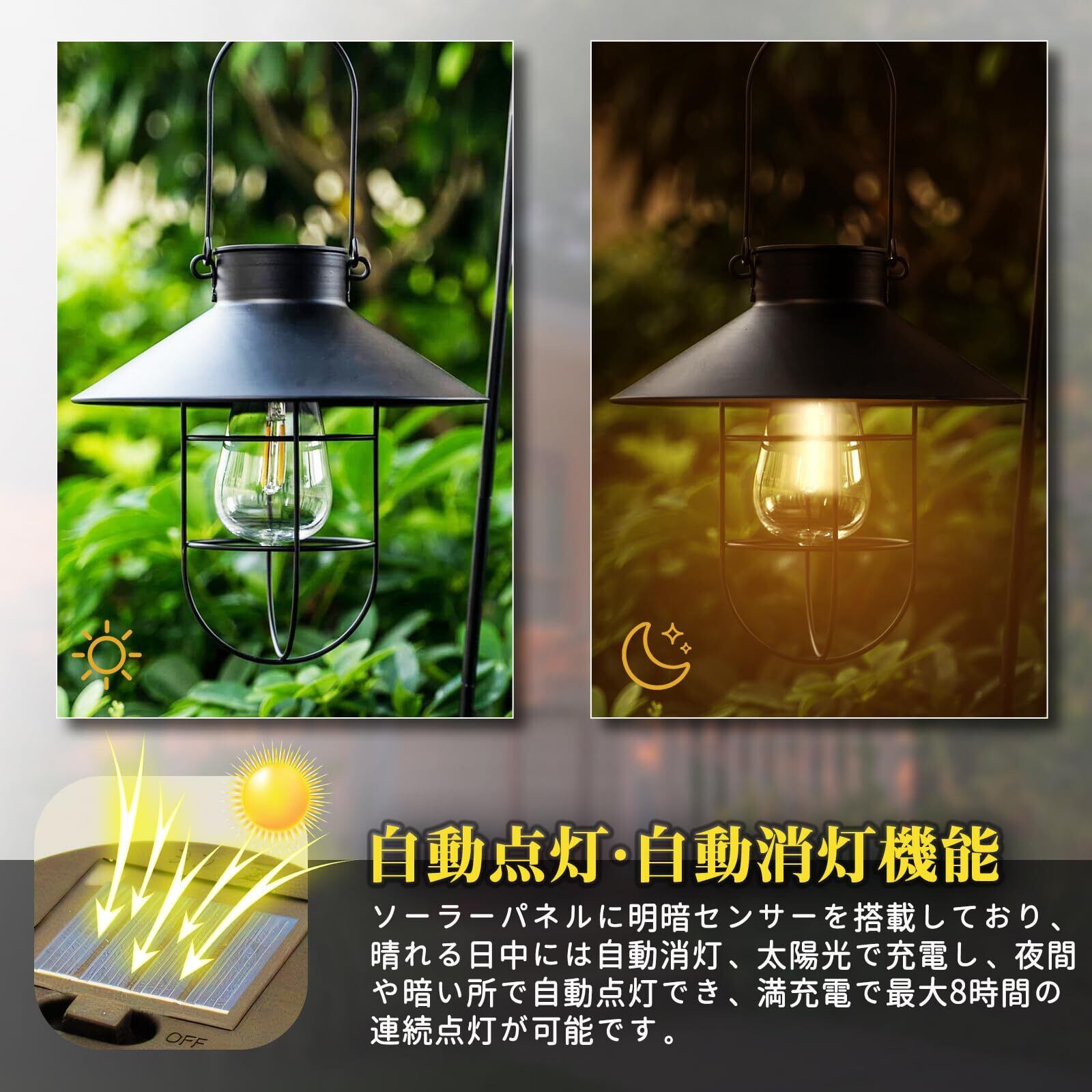 【在庫セール】ソーラーランタン 屋外防水 屋外ランタン おしゃれ ガーデンライト ソーラーライト 太陽光LEDランタン 吊り下げ LED 暖色 省エネ 屋外 レトロ アンティーク 北欧 照明 飾り用 IP55防水 自動点灯 玄関先/車道/歩道/庭/ガーデン/ベランダ 黒 (1個セット) | bobo