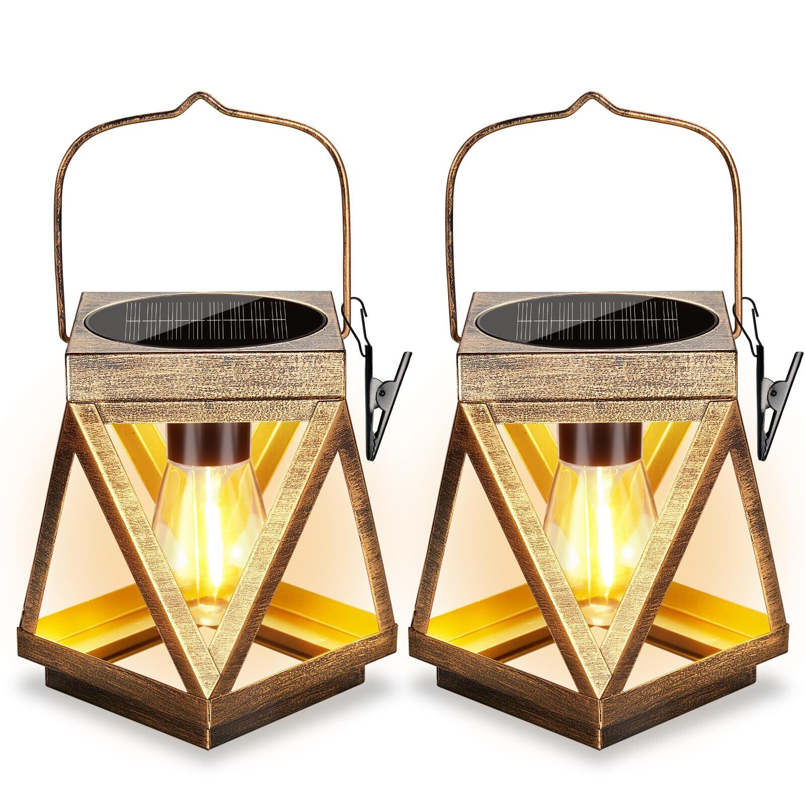 Letmy アウトドアソーラーランタン ソーラーライト 屋外 IP65防水 ガーデンライト おしゃれ ledランタン LED 電球色 夜明け 自動オン/オフ 庭、花壇、パティオ、玄関、ベランダ、駐車場、歩道などに適用 屋外 照明 ガーデニング イルミネーション 母の日ギフト 耐寒耐熱 1/2/4個セット (二点セット)