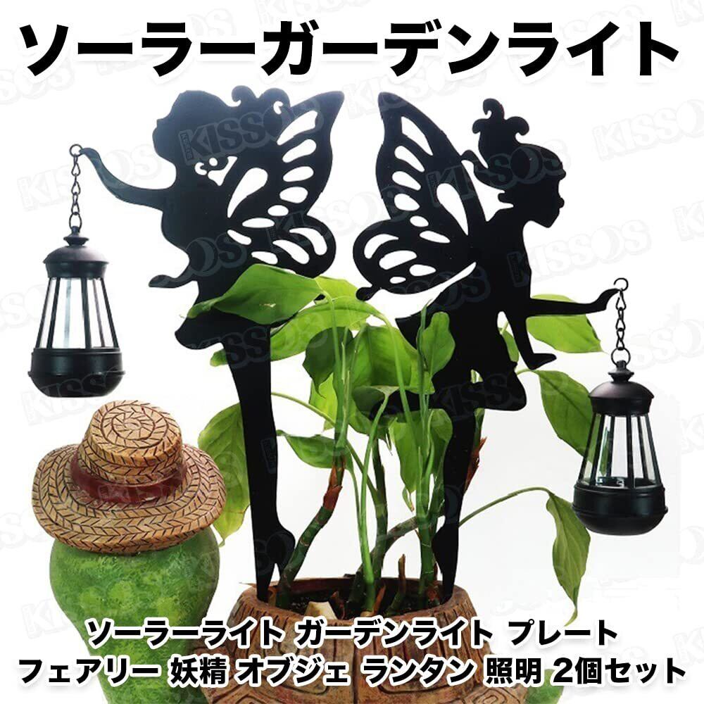 商品名:ソーラーライト ガーデンライト プレート フェアリー 妖精 オブジェ ランタン 照明 2個セット
