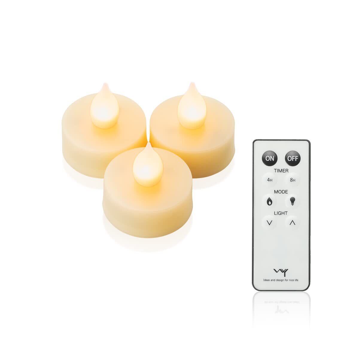 WY LEDキャンドル ティーライト 3.9cm リモコン付き おしゃれ 揺れる 自動消灯 自動点灯 タイマー 調光 北欧 かわいい ボタン電池付き LEDキャンドルライト キャンドルライト 電池 キャンプ ライト ゆらぎ おしゃれ led キャンドル ロウソク ろうそく 寝室 ギフト プレゼント ハロウィン クリスマス WY-LEDSET007 (ウォーム 3個)